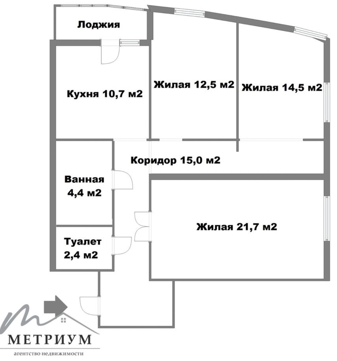 Квартира размером 85,5 кв. м состоит из просторной прихожей, большой светлой гостиной комнаты, совмещенной с кухней, спальни с гардеробной и выходом на лоджию, второй спальни, которую можно переоборудовать в детскую, и вместительного санузла.