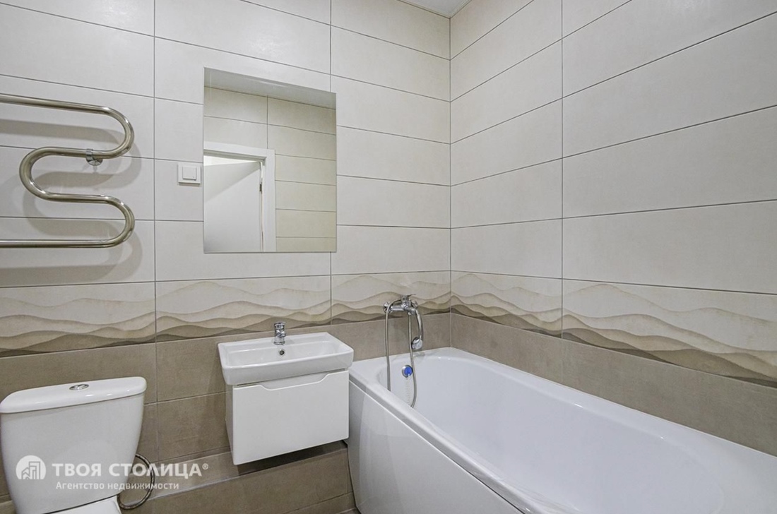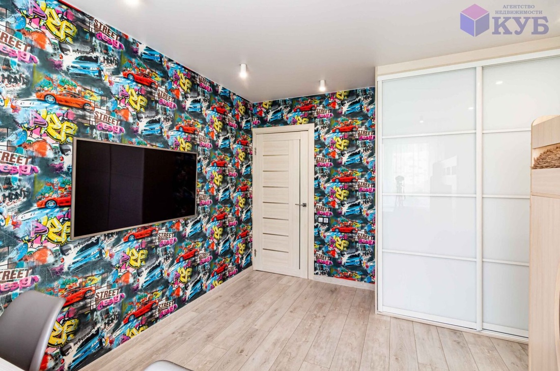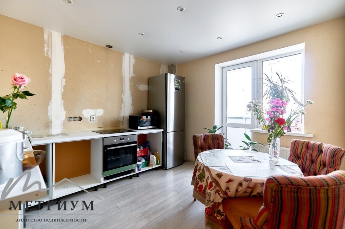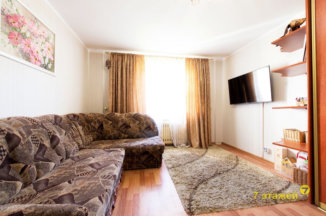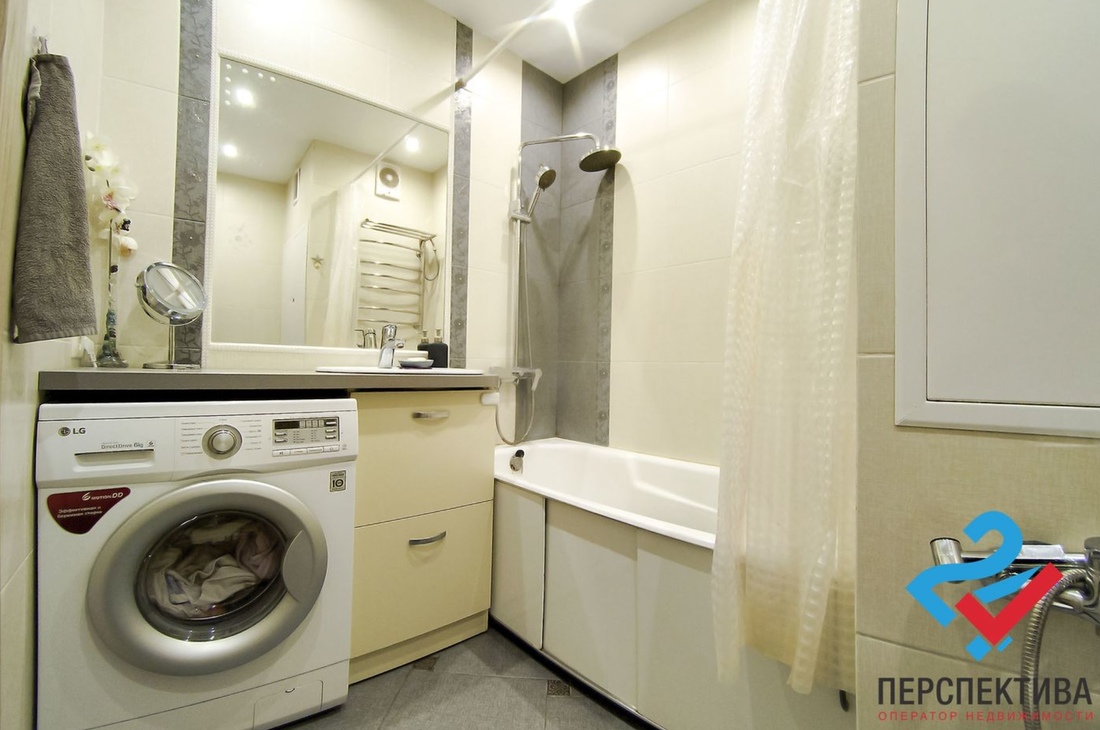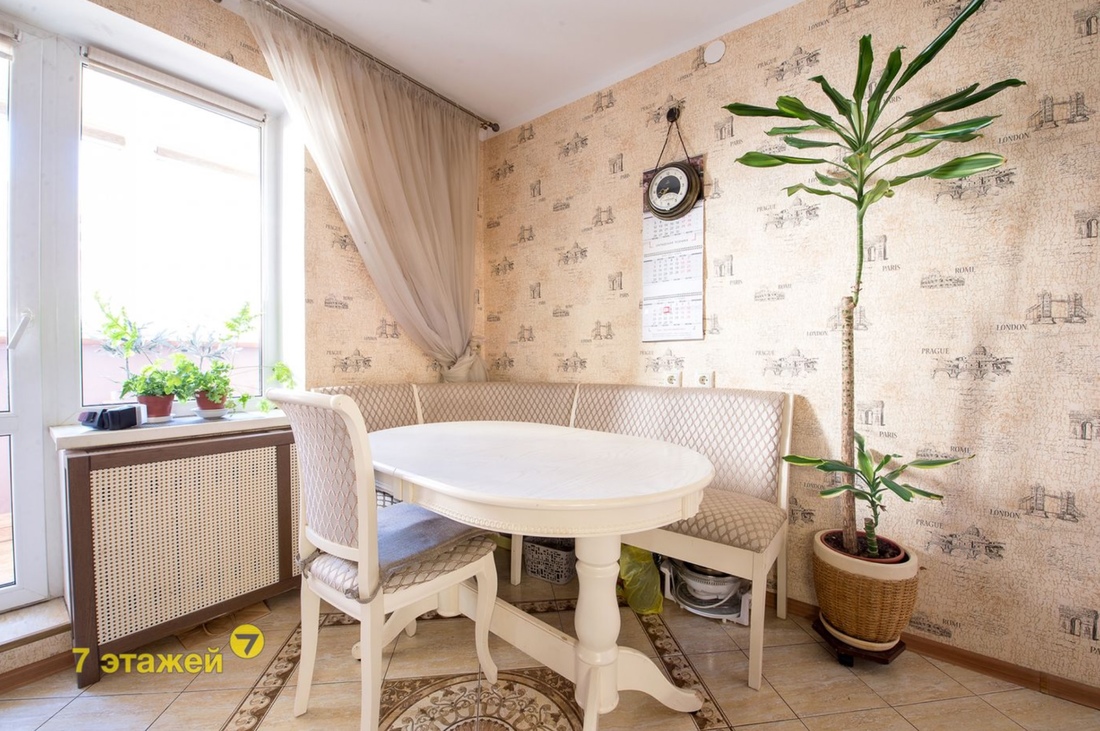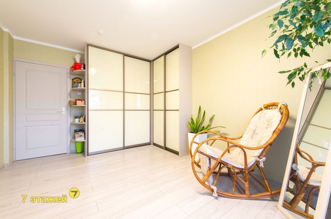 «В квартире натяжные потолки, на кухне и в прихожей на полу плитка, в жилых комнатах — ламинат. Два встроенных шкафа-купе. Кухня с обеденной группой остается покупателю. Просторная лоджия с декоративной штукатуркой, на полу керамогранит, стены утеплены пеноплексом, есть шкаф», — описывает недвижимость владелец.
