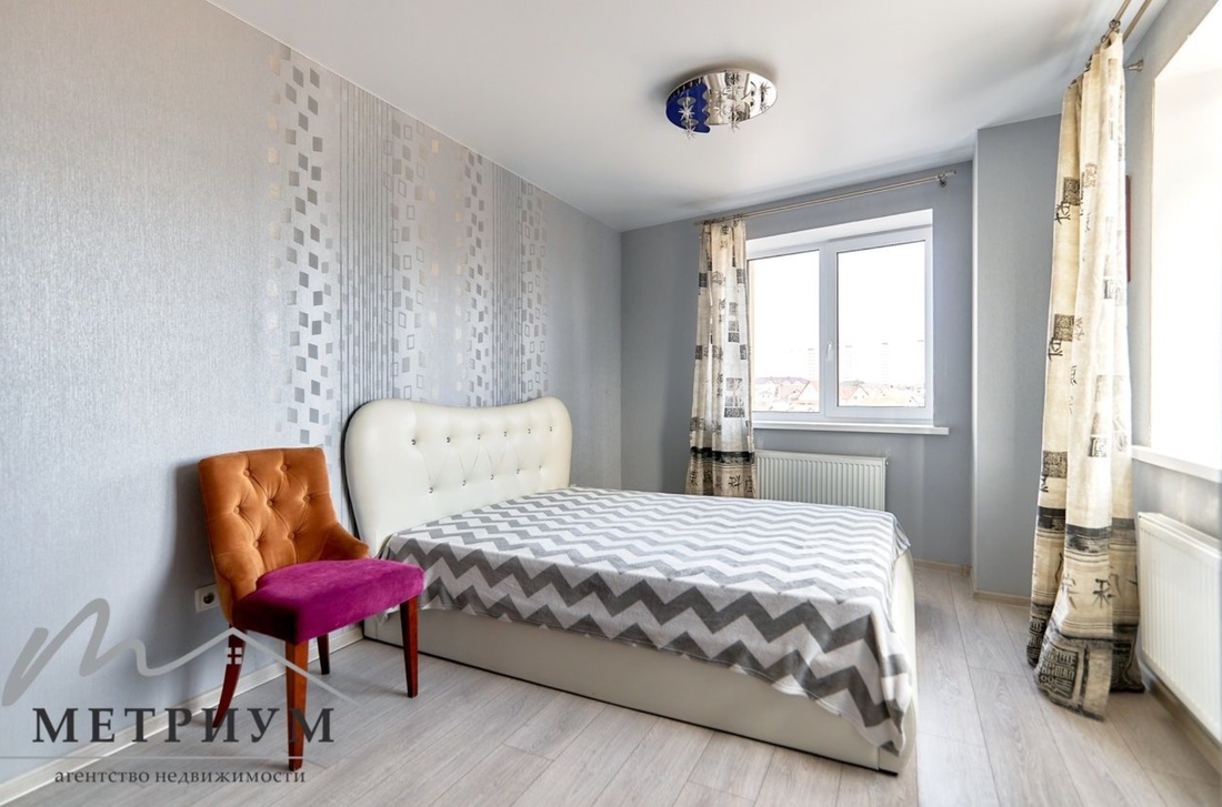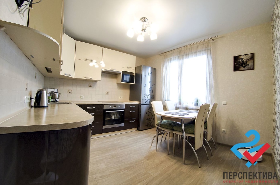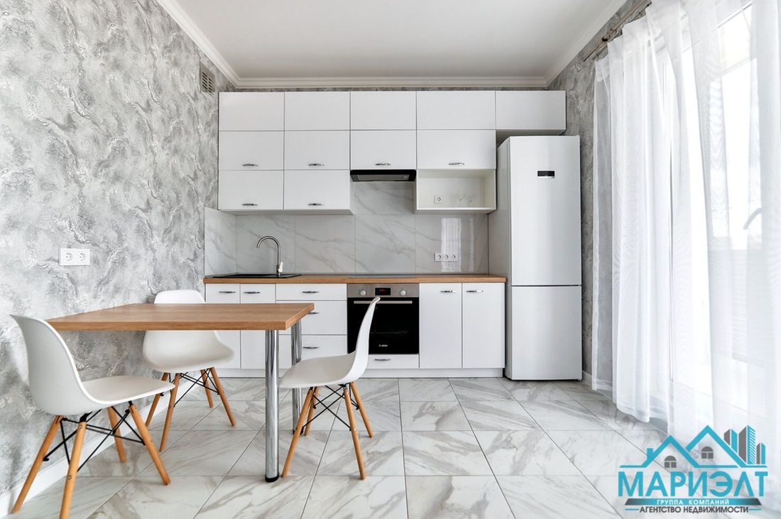 Ну а за 82 000 у. е. можно обзавестись евродвушкой на улице Амелии Эрхарт. Размер у нее скромный — всего 43 «квадрата». Отличается более современной планировкой (в частности, кухня объединена с гостиной), светлым и лаконичным дизайном. Практически все, что вы видите на фото, перейдет к новым владельцам.