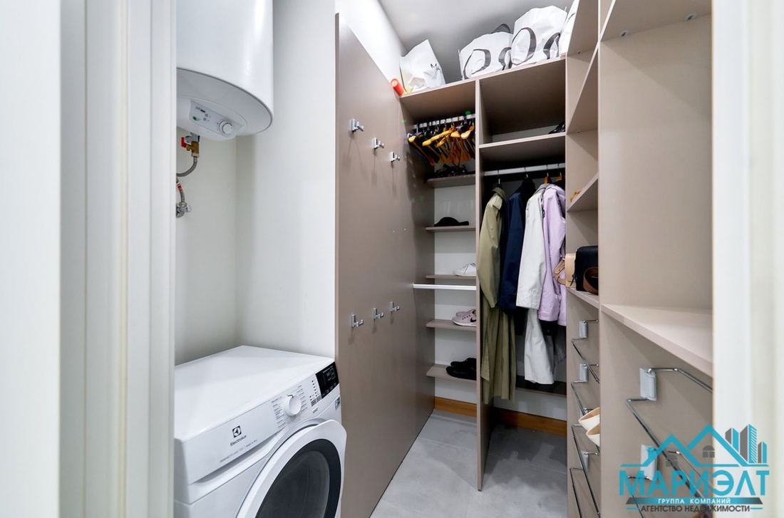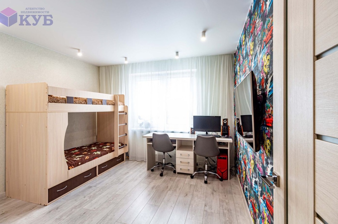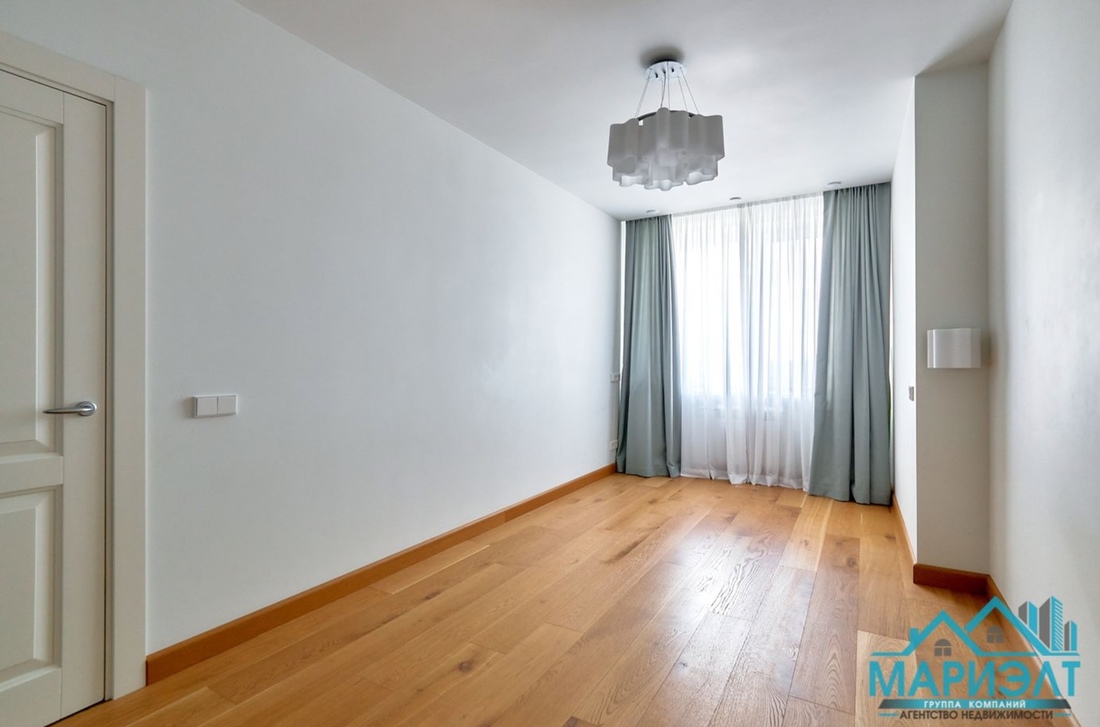 Жилье представлено большой прихожей, просторной гостиной, переходящей в кухню с французскими окнами в пол, взрослой спальней с выходом на утепленную и переоборудованную под кабинет лоджию, детской спальней, гардеробом, раздельной ванной и санузлом. На полу в прихожей, кухне, ванной и с/у плитка с подогревом. Установлено три кондиционера.