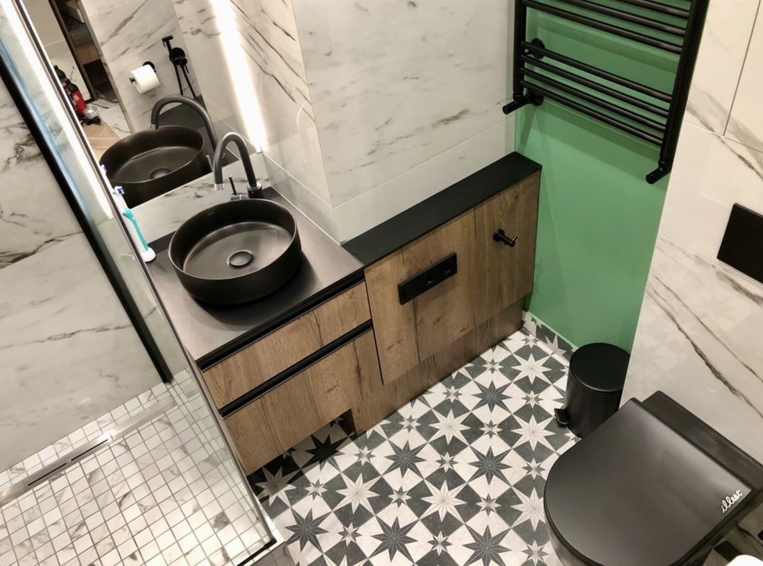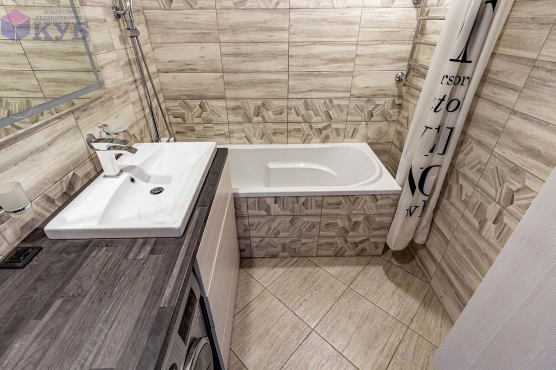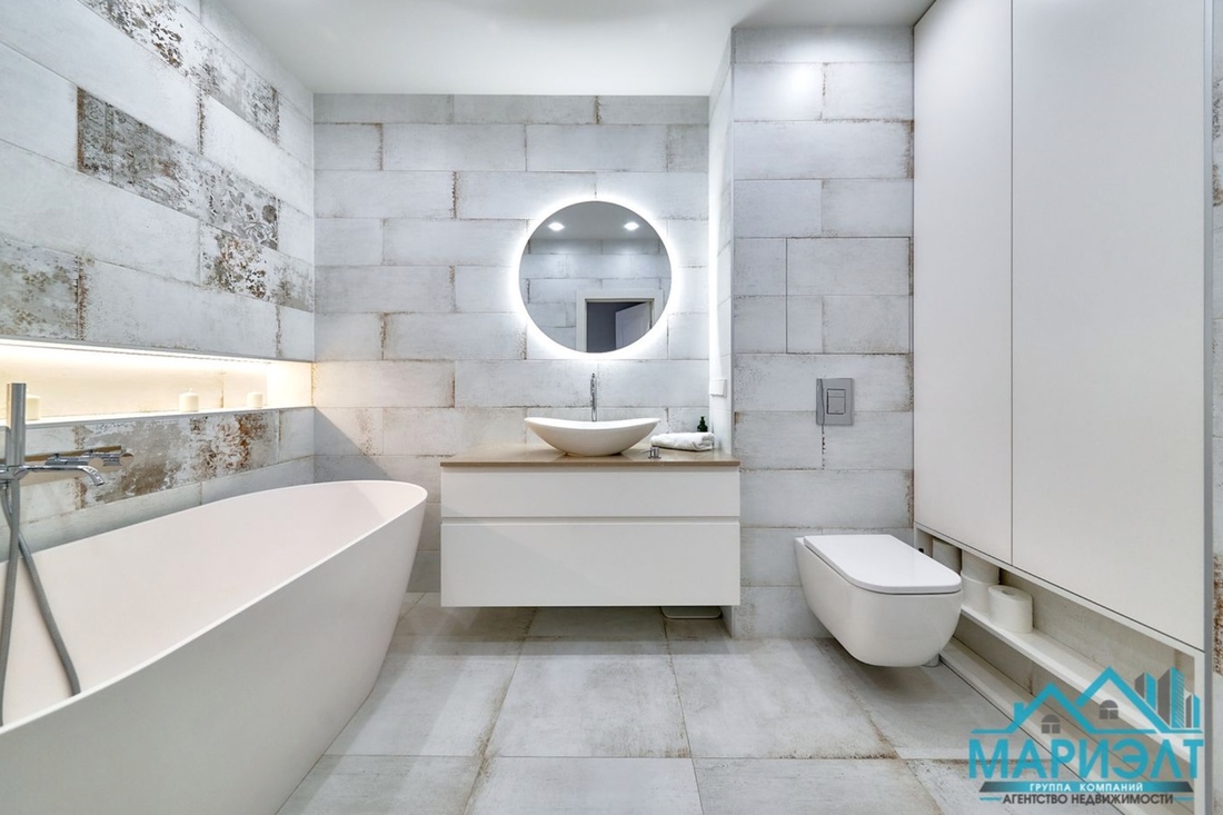 На наш взгляд, особого внимания заслуживает ванная — выглядит довольно стильно.