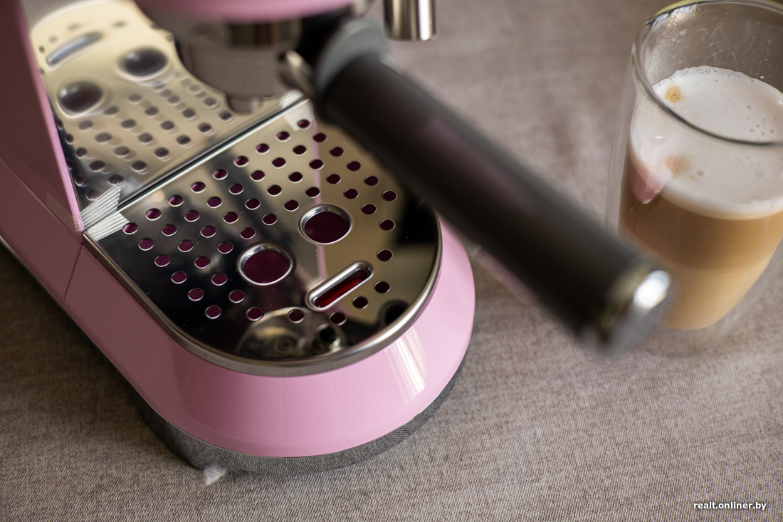 С первого взгляда возникает вопрос: точно ли она умеет варить кофе? Выглядит настолько мило, что похожа на дорогую игрушку, только весит как настоящая. Ну что ж, проверим. Устанавливаем, включаем, любуемся, начинаем взбивать плотную молочную пенку, добавляем кофе — и спустя несколько минут ароматный утренний капучино уже пахнет на всю кухню. Как раз то, что нужно.