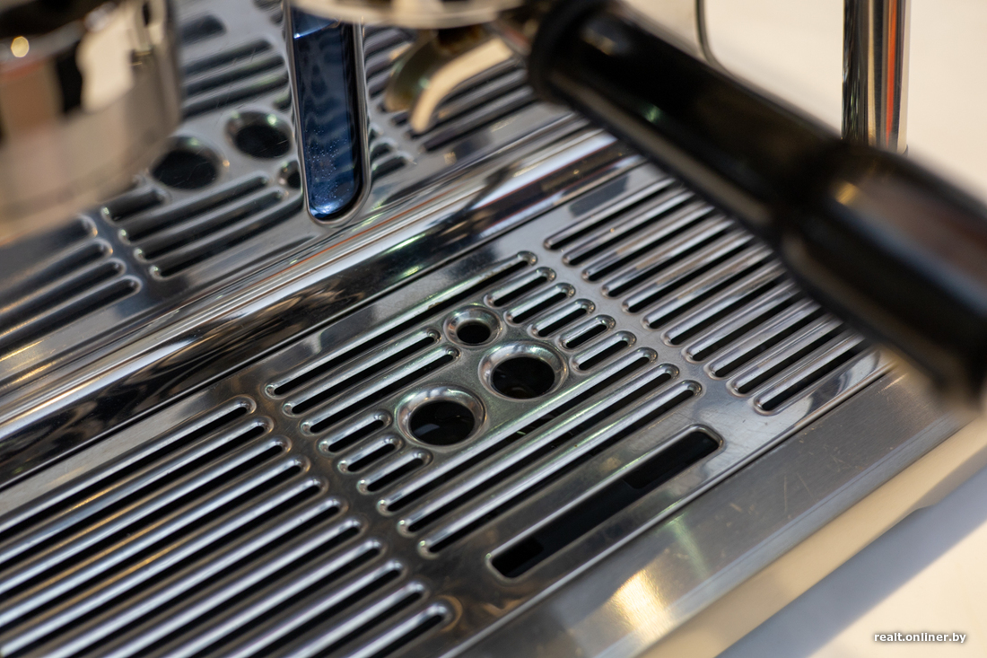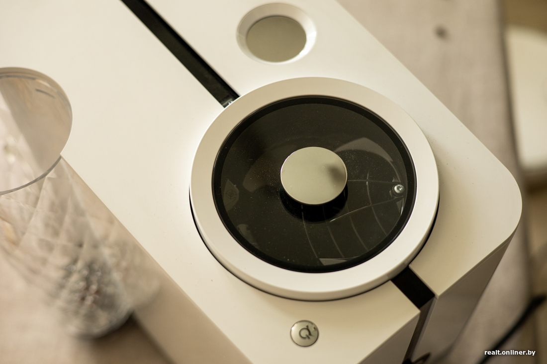 Первое, что бросается в глаза, — бункер для воды алмазной огранки. Интересное и необычное решение. В инструкции пишут, что кофемолка AromaG3 мелет зерно с удвоенной скоростью, сохраняя аромат. Что ж, неплохо в целях экономии времени. Заливаем воду, засыпаем зерна, нажимаем кнопку, слушаем хруст помола зерен — и кофе готов. Все прекрасно, но любителей кофе с молоком ждет разочарование: машина не умеет делать молочную пену. Но эту проблему легко можно решить, купив автоматический вспениватель молока.