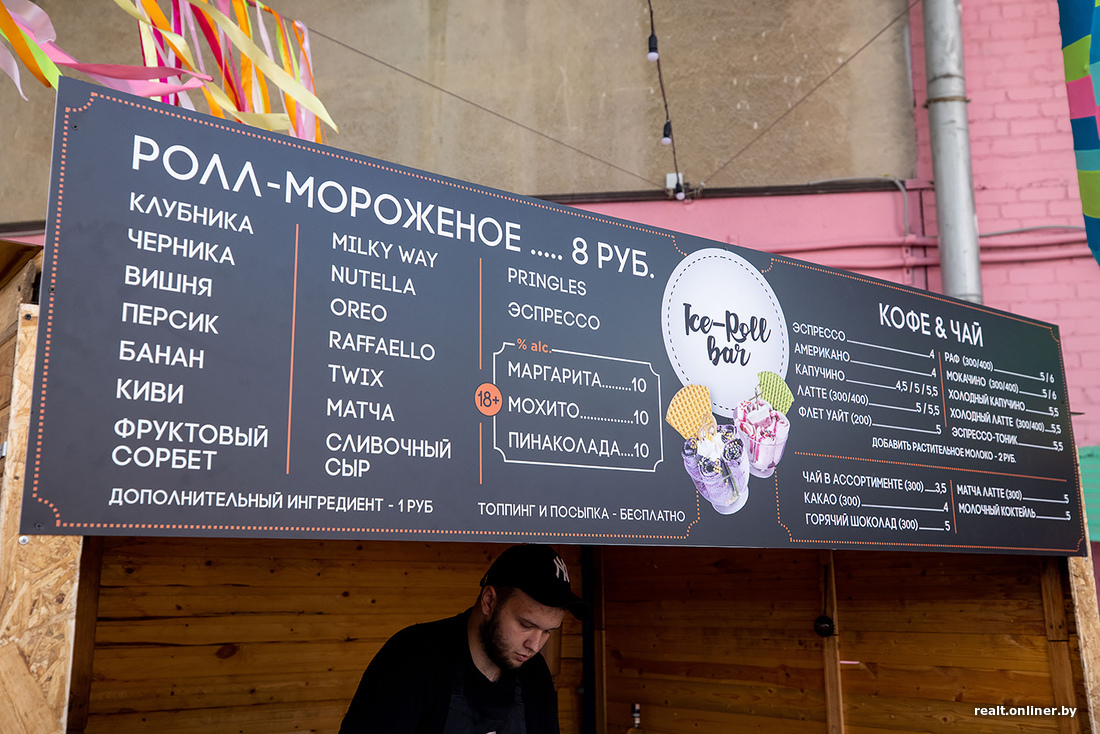 Есть точка с ролл-мороженым. Цены на кофе и само мороженое средние для Минска.