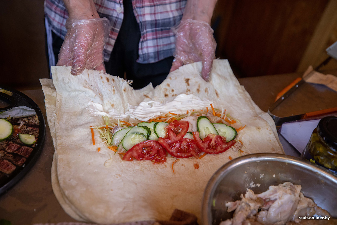 Также работает локация с грилем, где жарят ребрышки и крутят шаурму.