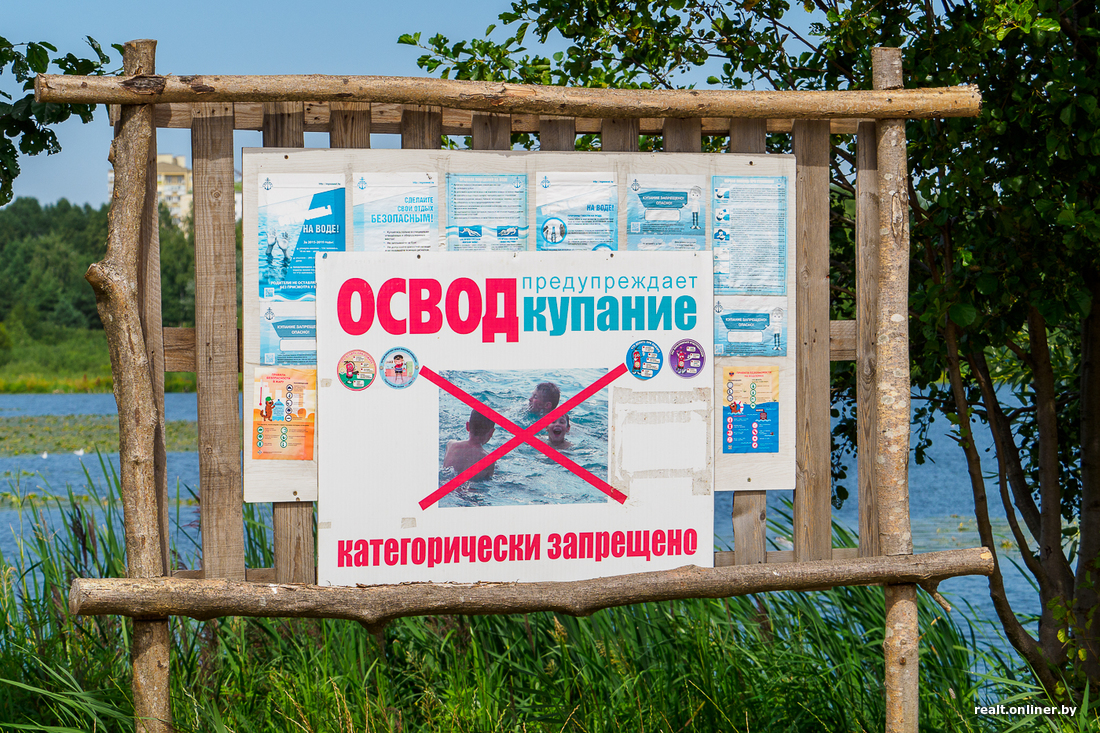 Отдельная тема — запрет на купание. Дети мочат ножки в воде, но купальники у горожан должны оставаться сухими. ОСВОД бдит, разместил здесь сезонный спасательный пост. Не забыли и напомнить про штраф в 3 базовые величины.