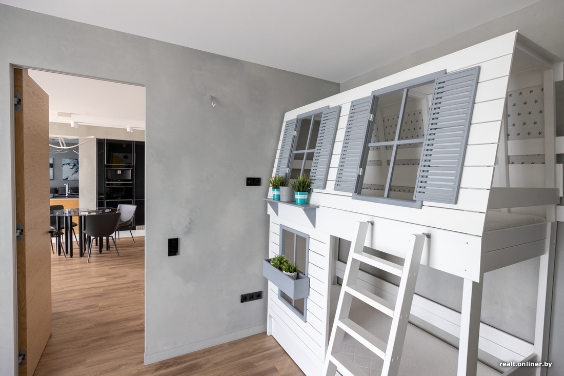 — Перепланировкой занимался самостоятельно. Полностью эту процедуру удалось закончить лишь в 2020 году. С согласованием были сложности: все-таки идея для Беларуси не самая распространенная, у нас обычно убирают или переносят стены, а тут нужно было узаконивать проем в потолке, лестницу. Приходилось много общаться с разными специалистами. После прохождения всех возможных инстанций и получения разрешения возникла проблема с техпаспортом: долго не мог присвоить двум квартирам один и тот же адрес. Программа БРТИ не позволяет этого сделать. В итоге мы разобрались и с этой проблемой, ведь это была наша с супругой мечта, — вспоминает владелец.