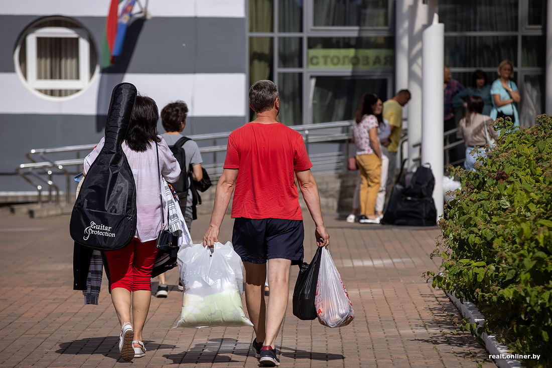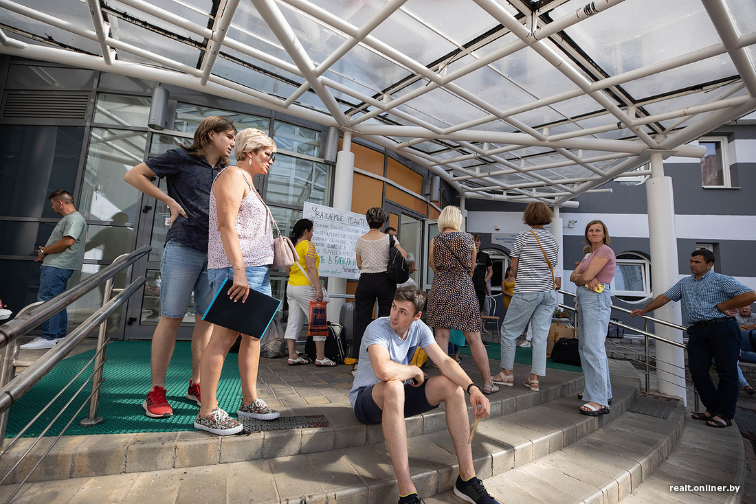 — Очень большие очереди. Может, это потому, что смешали в один день и первокурсников, и остальных, — рассказывает Наталья, мама вчерашней школьницы из Могилева. — Студенты сейчас внутри: оформляют документы, получают студенческие. Потом пойдем в поликлинику за справкой — еще много дел. Но дети самостоятельные, а мы здесь только так: с сумками посидеть, с перевозкой помочь.