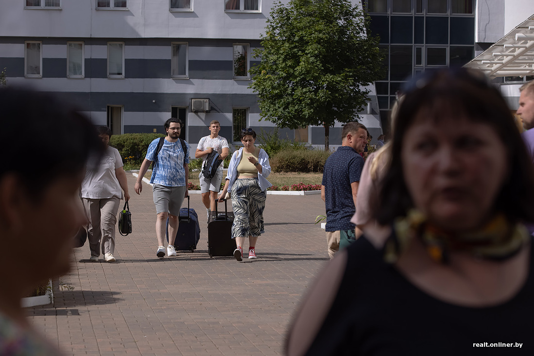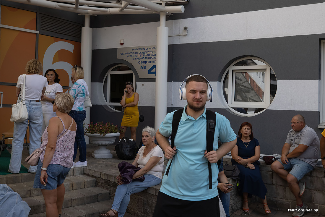 Больше всего людей мы встретили рядом с общежитием БГУИРа, где куют в том числе будущих айтишников. Сами студенты — опять внутри здания, родители ждут снаружи.