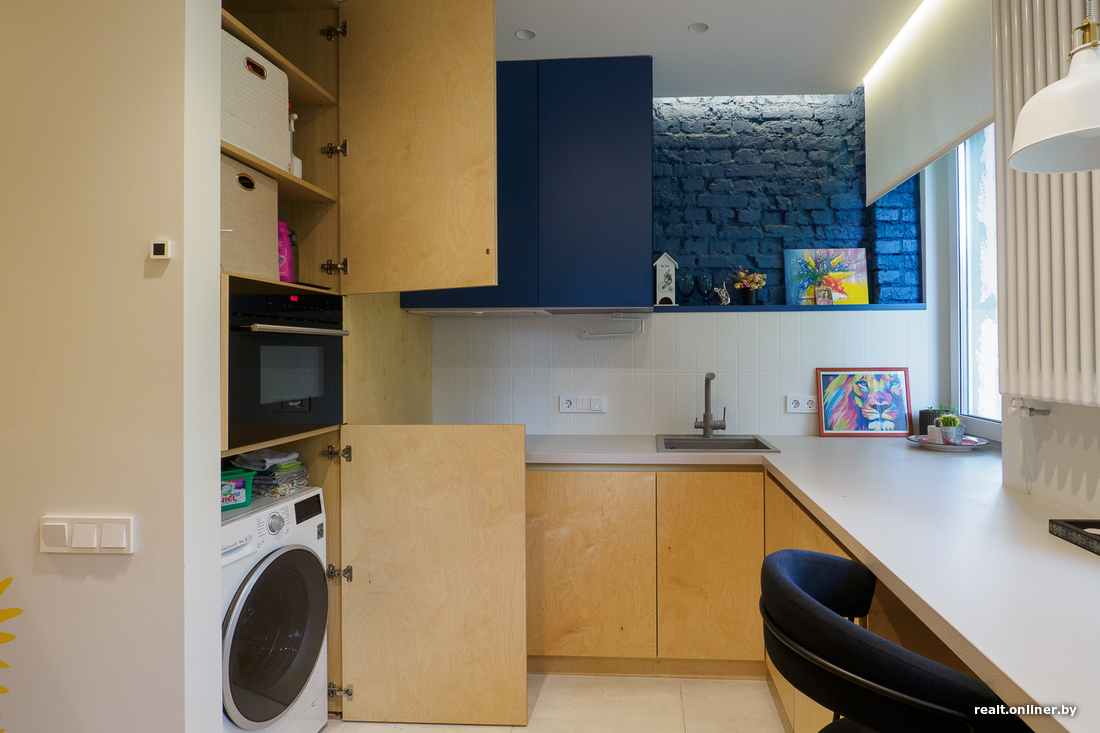 — Что касается систем хранения, то их более чем достаточно. Пространство было спланировано очень тщательно и с умом: ниши и полки устроены везде, где это было возможно. Поэтому до сих пор часть пространства, предназначенного для хранения вещей, у меня пустует.
