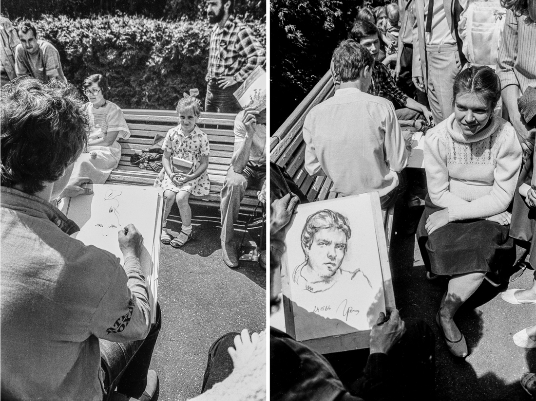 — Парад ретроавтомобилей на снимках, очевидно, был частью какого-то праздника, но в памяти это не сохранилось. Вообще архив моих черно-белых фото не в образцовом порядке, поэтому дату съемки часто узнаю по косвенным признакам. Например, по возрасту моих детей в кадре, или вот художник в парке Горького оставил на портрете надпись «26.05.86». Если кто-то из читателей уточнит еще какие-то названия событий, это будет очень кстати.