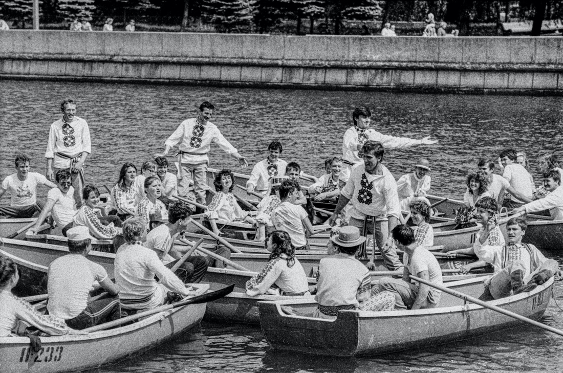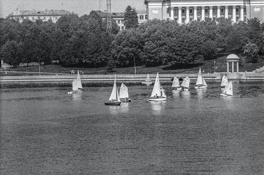 На фото из 80-х — и популярные теперь праздничные локации вроде парка Горького и проспекта Победителей (тогда еще — проспект Машерова). Из менее привычного сейчас — парк Янки Купалы, активно использовавшаяся художниками и другими минчанами набережная, да и сама Свислочь, на которой можно было увидеть то парусники, то многочисленные лодки.