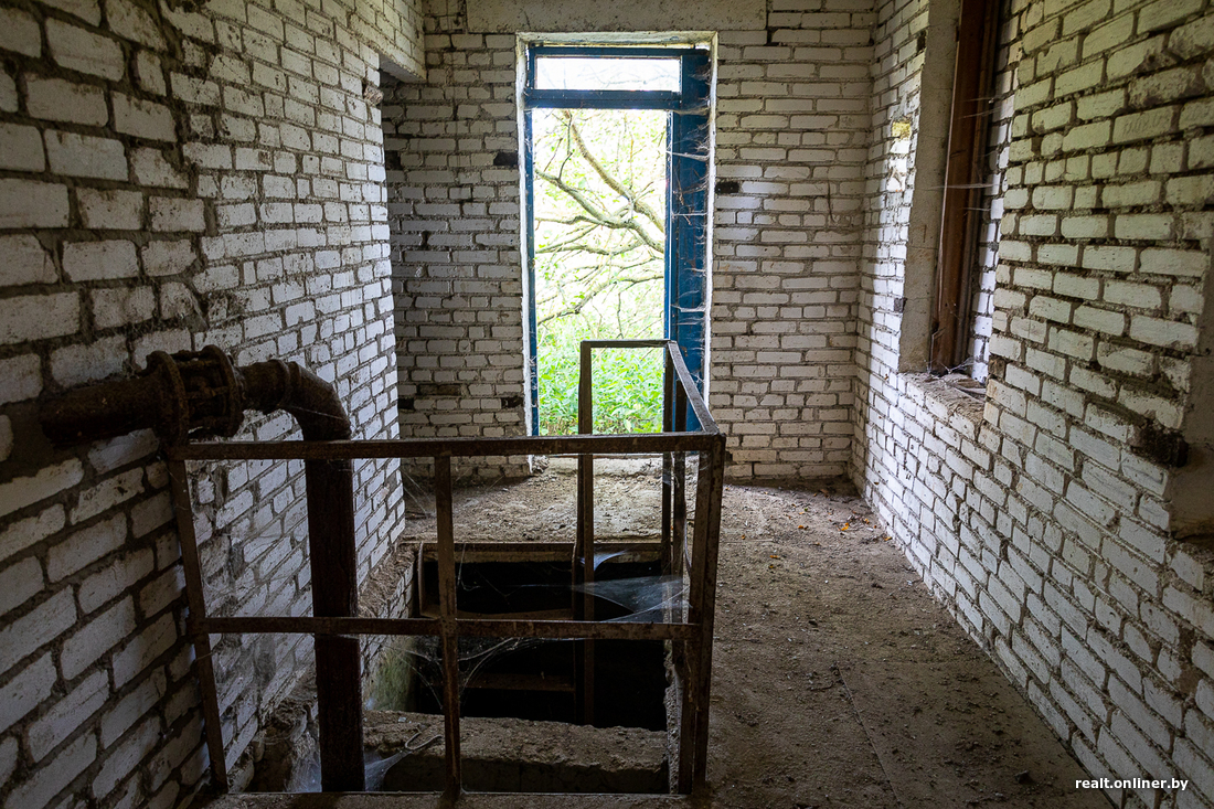 Помещение бывшей канализационно-насосной станции заброшено, двери открыты.