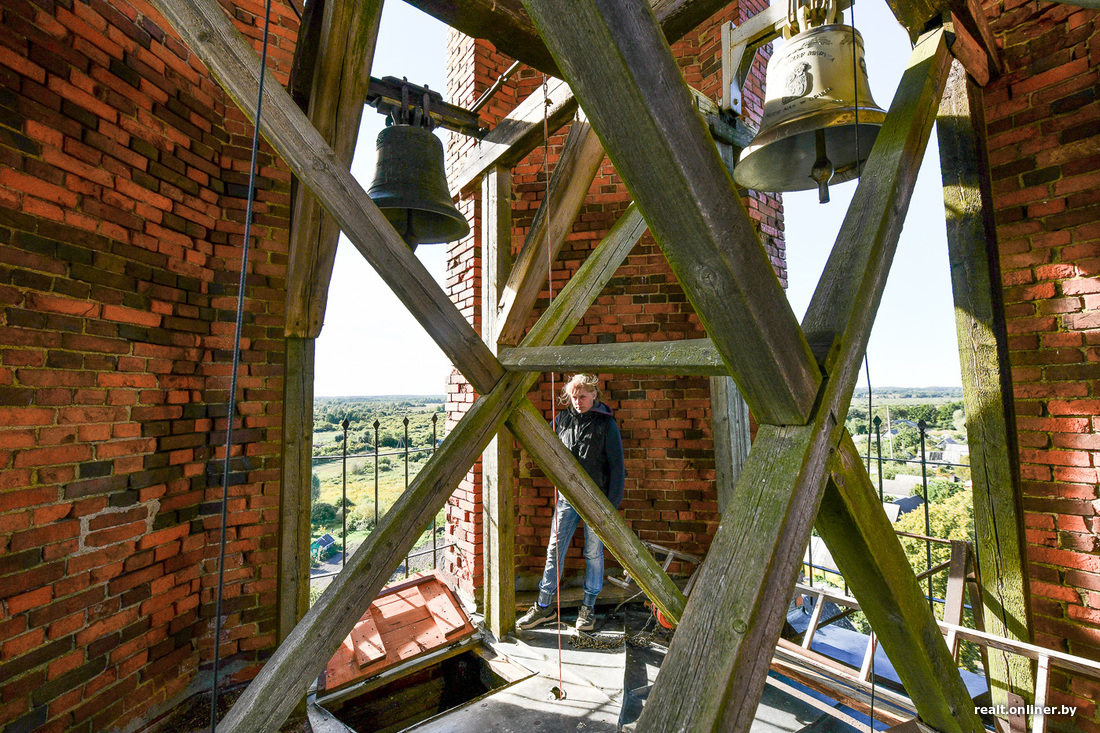 Зато на высоте, где мы находимся, — три колокола, которые повесили еще в 2004-м. Самый тяжелый назван в честь библейских героев: Иисуса, Иосифа и Марии. Два других — без названий.