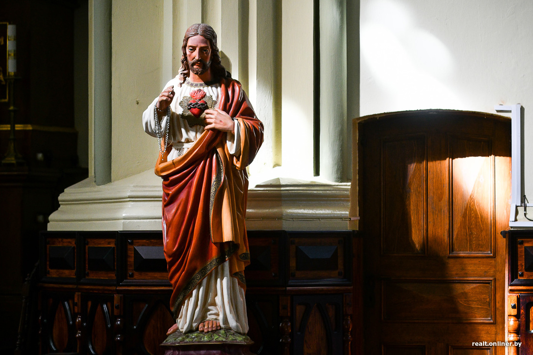 После возвращения костела верующим сюда вернулись и несколько старинных скульптур — Иисуса и Божьей Матери.