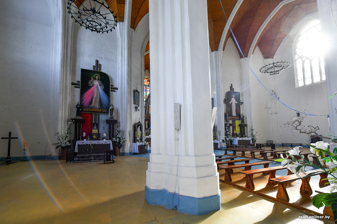 Ксендз Альфред служит здесь уже 22 года, с сентября 2000-го. А впервые побывал тут раньше, в 1991-м: на тот момент прошло всего два года после возвращения костела прихожанам.