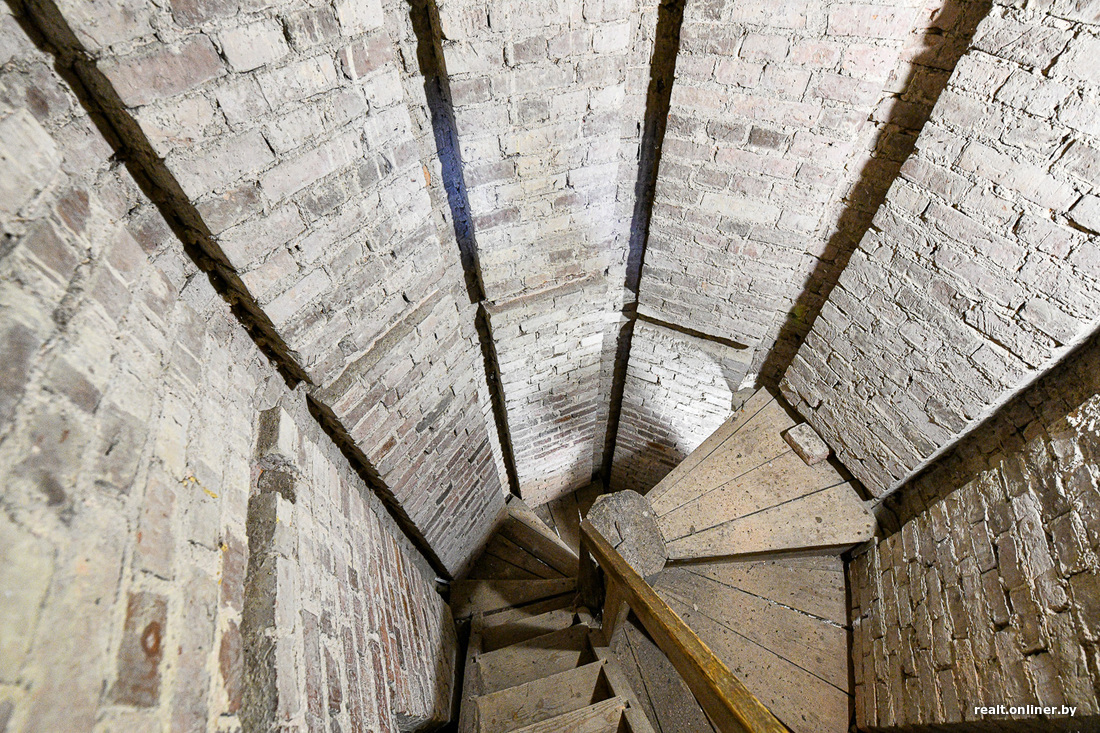 Раньше сюда нет-нет да и водили туристов. Теперь не пускают: опасаются из-за состояния лестниц. Вторая башня вообще давным-давно закрыта. Ксендз Альфред рассказывает, что она пострадала еще во время войн: там не рекомендовали вешать колокола.
