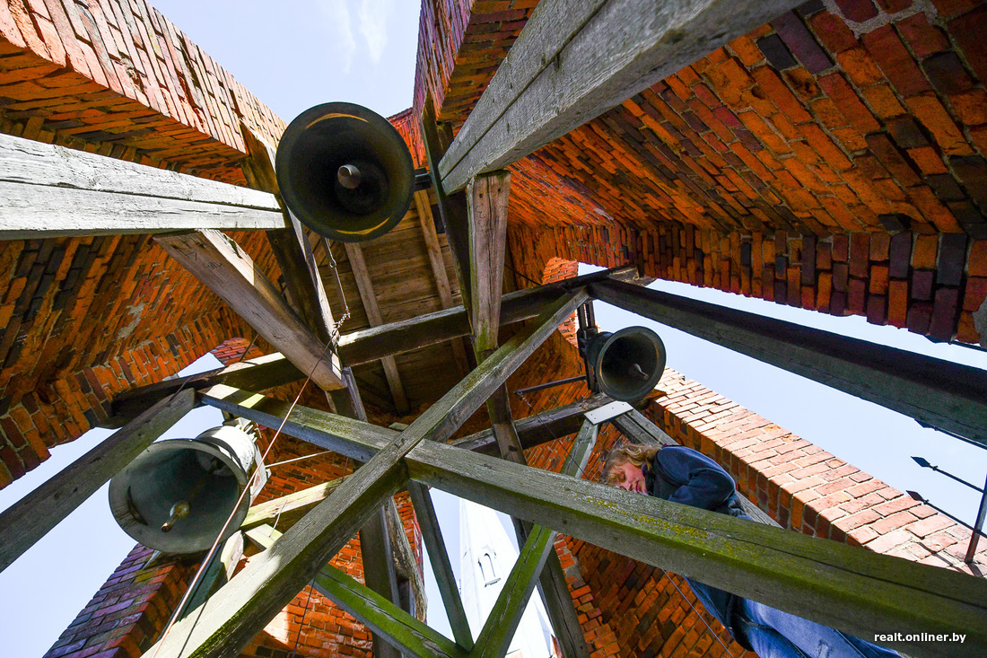 — У нас есть электронный колокол, но месяца два назад отремонтировали настоящий. Было сгнившим основание, на котором он держится, — рассказывает ксендз Дмитрий.
