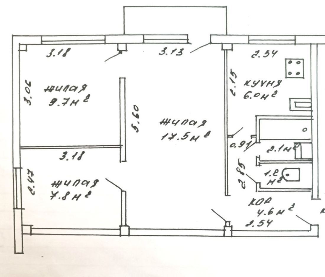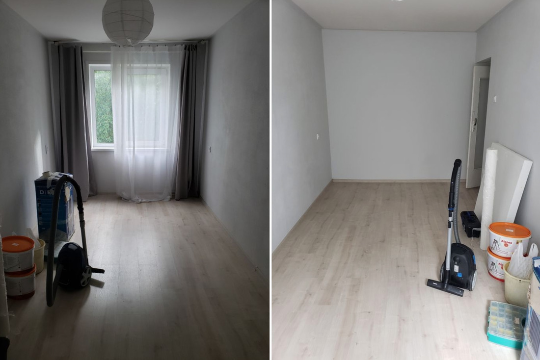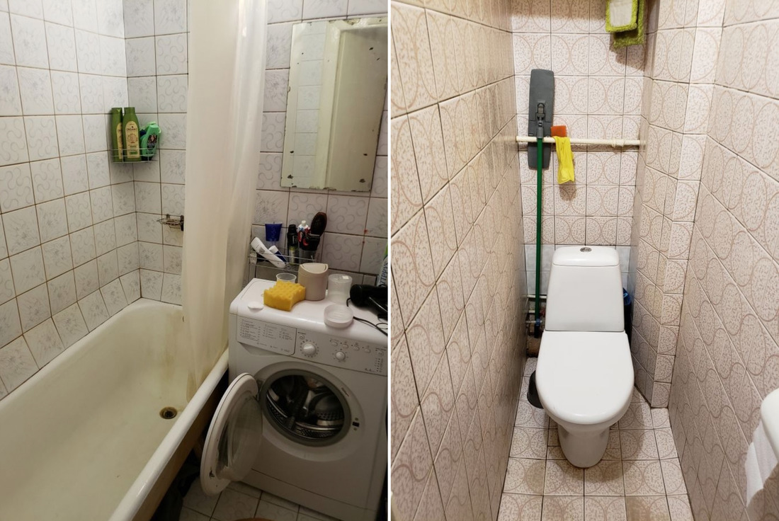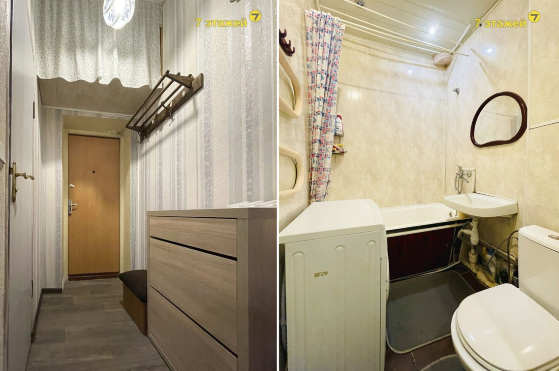 В жилой комнате сделан косметический ремонт: свежие обои, линолеум, новые двери и стеклопакеты. Еще и вся мебель остается. А вот кухне явно потребуется обновление, да и коридорам тоже.