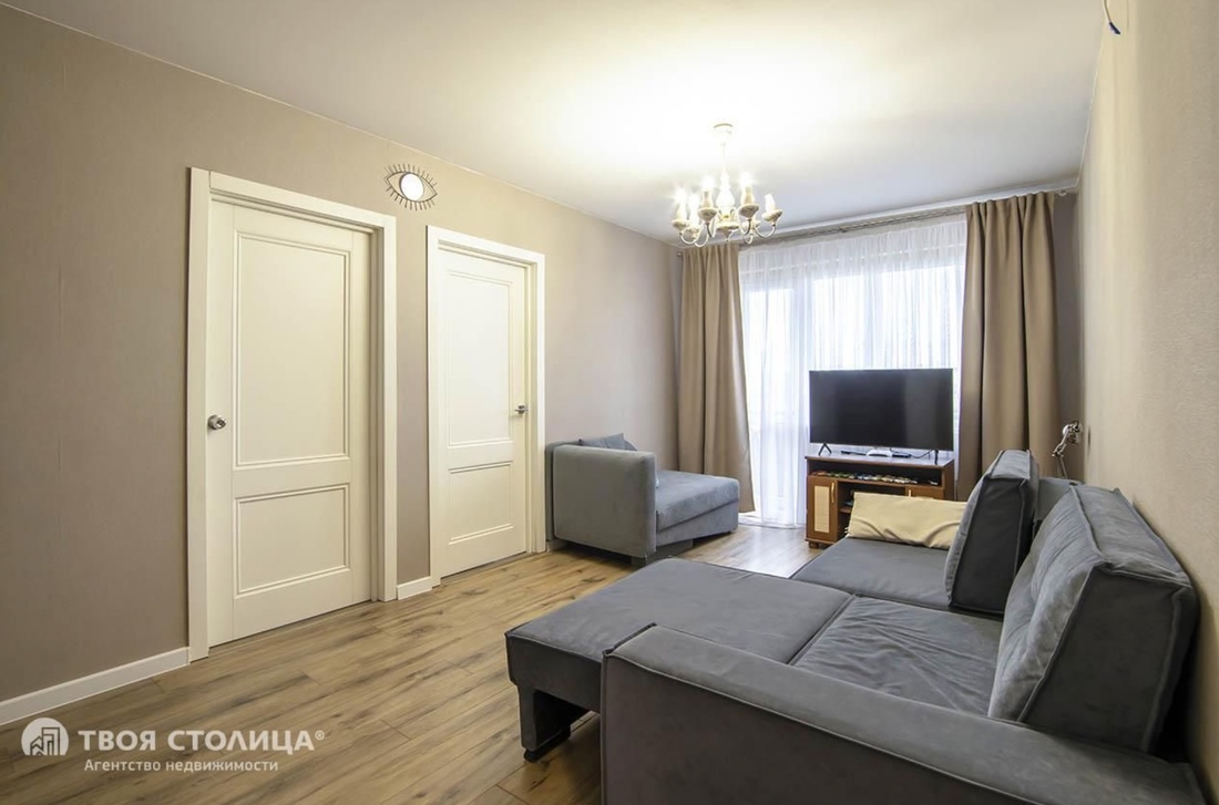 А за $57 900 по курсу предлагают квартиру в пятиэтажке на улице Берута. Площадь — 49,8 «квадрата». Обратите внимание на современную планировку: гостиная здесь объединена с кухней.
