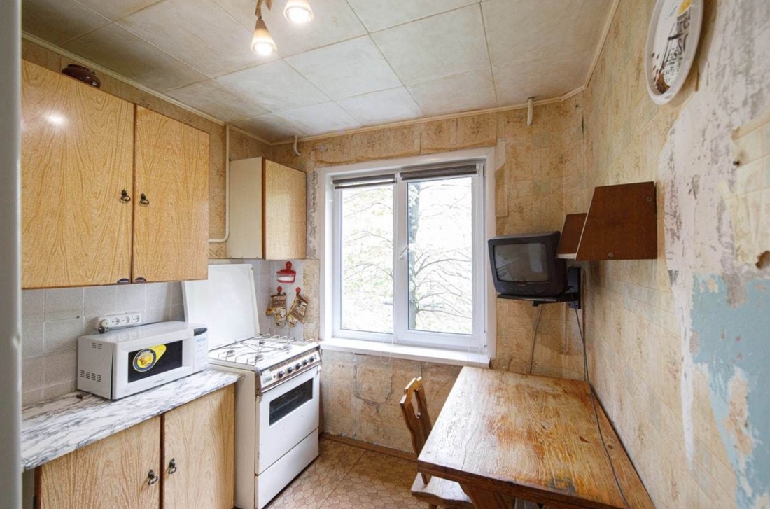 Плавно переходим к двухкомнатным квартирам. За 43 500 у. е. можно купить жилье в хрущевке 1962 года на улице Белинского. Место неплохое: относительно недалеко до станции метро «Парк Челюскинцев», да и Севастопольский парк, считайте, под боком.