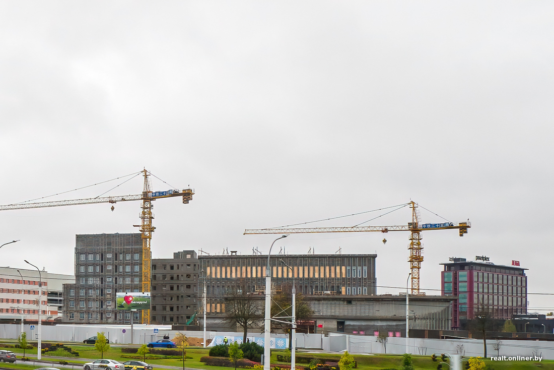 Невероятное по масштабам здание с закрытым внутренним двором строится возле торгового центра «Корона-Замок» с середины лета 2019 года. Долгое время минчане, глядя на темпы и размеры объекта, задавались вопросом: «Что ты такое?» Баннеры с иероглифами и традиционная красная арка у одного из въездов на стройплощадку ясности не добавляли.