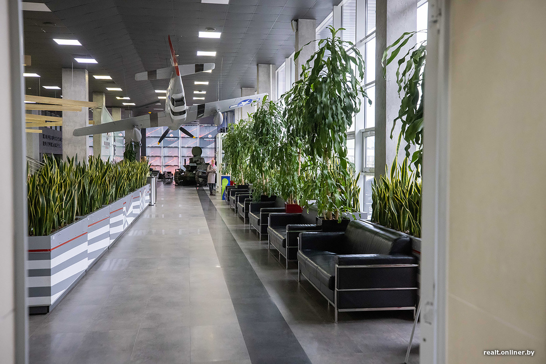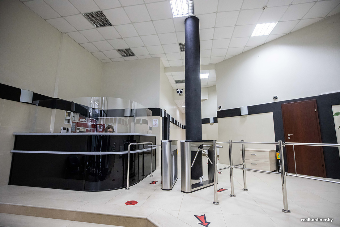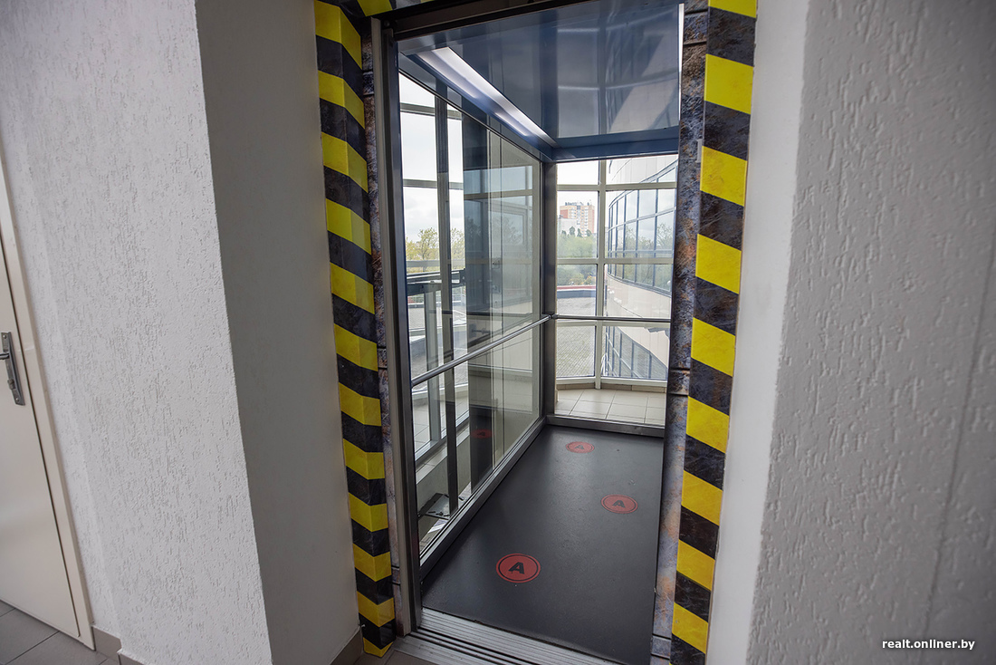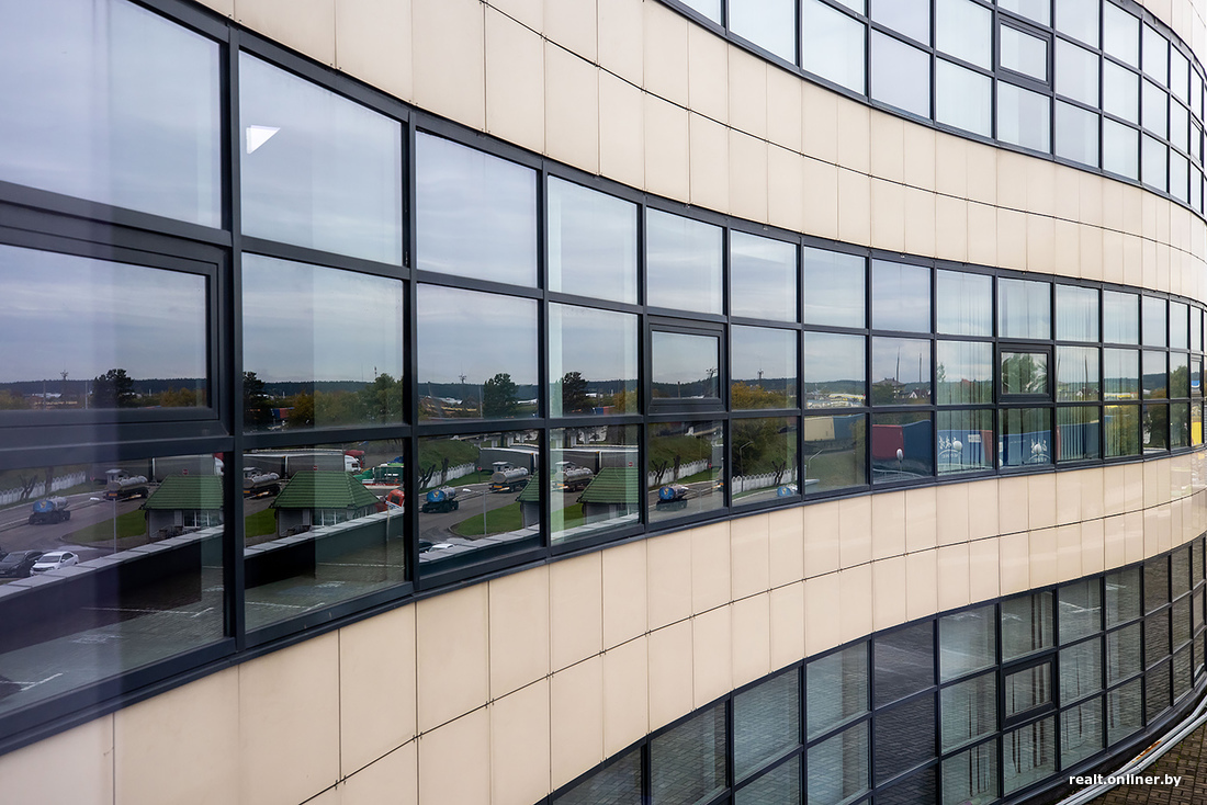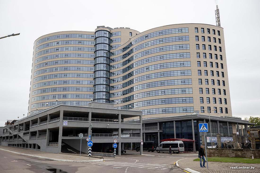 Когда-то «Волна» была одним из первых белорусских бизнес-центров класса B, построенных по мировым стандартам: высокие потолки, панорамное остекление в пол, офисы разной планировки — от 40 до 7000 «квадратов». В здании стоят мощные кондиционеры, работает система вентиляции. Между этажами бегают шустрые лифты, в том числе «панорамный экспресс», как в Национальной библиотеке. Рядом — парковка на 328 автомобилей.