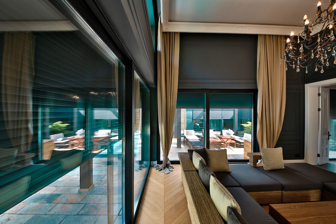 Такое решение я уже применял в нескольких проектах: изначально заказчики ставили роллеты в целях безопасности дома, а по итогу стали пользоваться как элементом солнцезащиты.