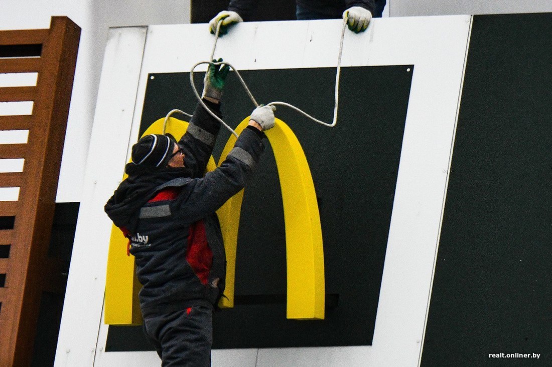Но не прошло и недели, а рестораны начали меняться. Сегодня с утра большие желтые буквы «М» и «полноценные» «McDonald's» стали демонтировать. Такую картину мы застали на крыше ресторана на Тимирязева.