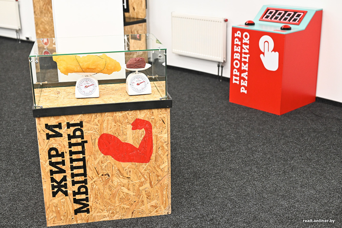 «Музей человека» начинается с состава человека: в организме взрослого содержатся тысяча спичечных коробков, два гвоздя, семнадцать кусочков хозяйственного мыла, сотня — мела и тридцать тысяч — карандашного грифеля. Все остальное — 60% — вода. Людей можно посчитать и по-другому, сопоставив их вес с весом животных. Так, например, женщина может быть такой же, как 7 енотов, 21 летучая мышь или 0,1 зубра. Если же размеры не имеют значения, можно обратить внимание на другие диковинки. Например, на симулятор чихания: шарик и трубы, по которым он выскакивает точно так же, как вирус по легким выходит наружу. Или на жилет с большим животом, предназначенным специально для мужчин: в нем они поймут, каково это — быть беременной.