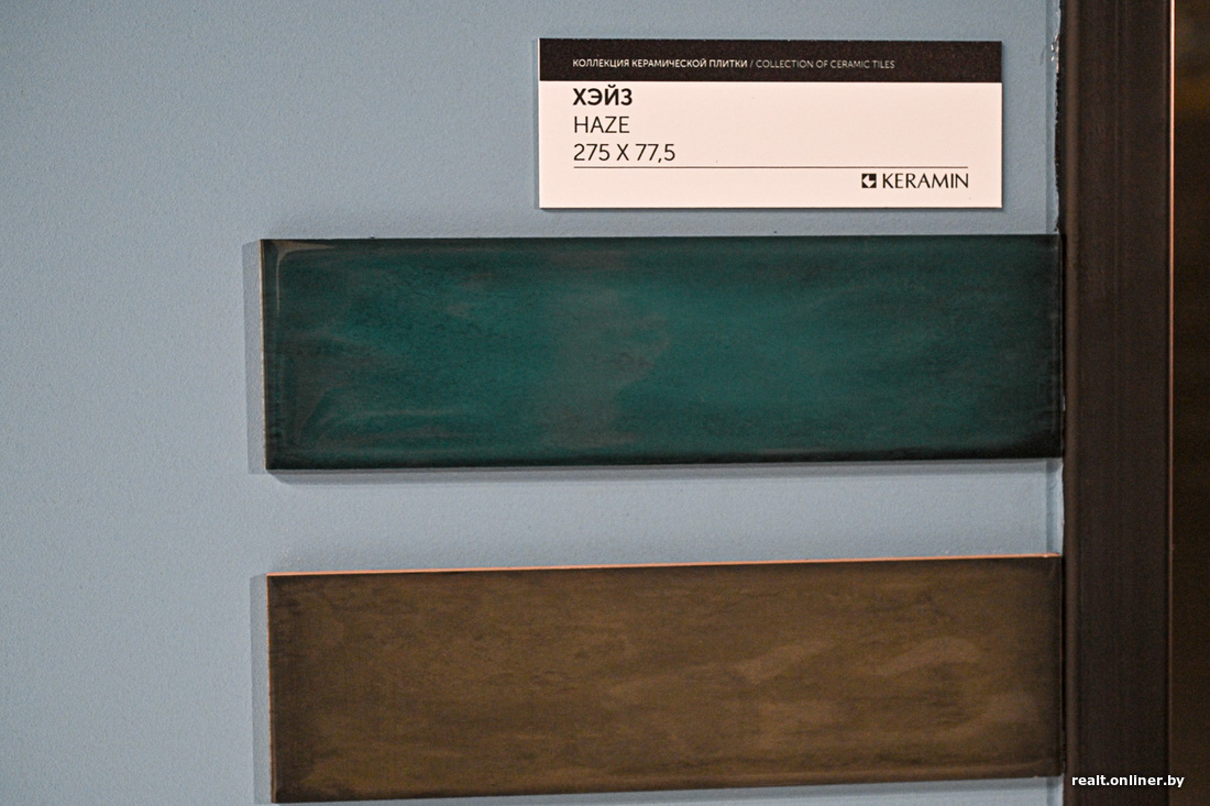 К сожалению, действительно крупноформатной плитки (такой, чтобы одним «листом» закрыть все пространство от пола до потолка или хотя бы половину) в базе производителя так и не появилось. Но «Керамин» к этому стремится: форматы 750×250 мм, 900×300 мм и 1200×600 мм уже в наличии. А в этом сезоне дизайнеры решили дополнительно поэкспериментировать с размерами и пропорциями. Так, в магазинах можно будет найти плитку размерами 275×77,5 мм и 300×93,8 мм. Это уже не привычный «кабанчик», а нечто более изящное.