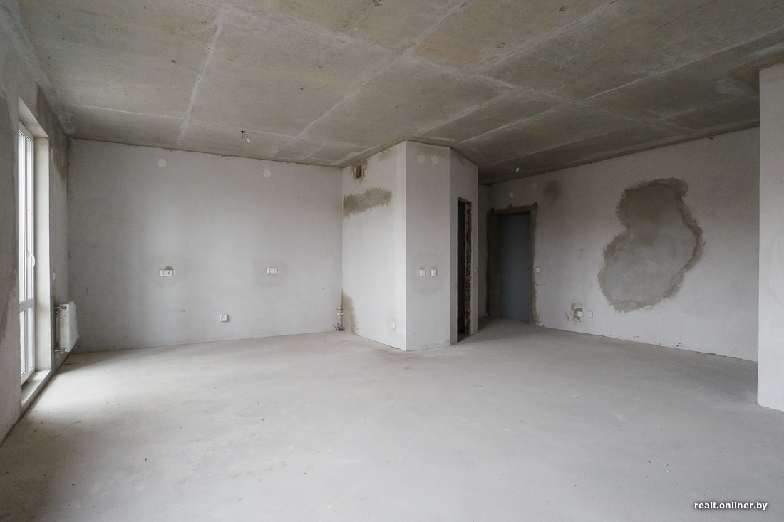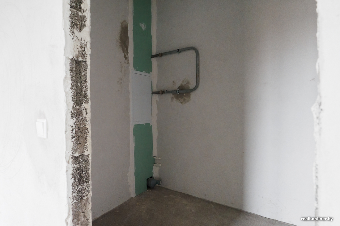 — Стяжка в целом неплохая, но идеальной ее не назовешь. В одной из спален центр приподнимается на 4—5 мм, это практически в допуске. Также в гостиной, ближе к зоне кухни, приопускается один край. Аналогичная проблема на лоджии. В нескольких местах есть неровности. Поправить эти моменты — и можно укладывать любое напольное покрытие.
