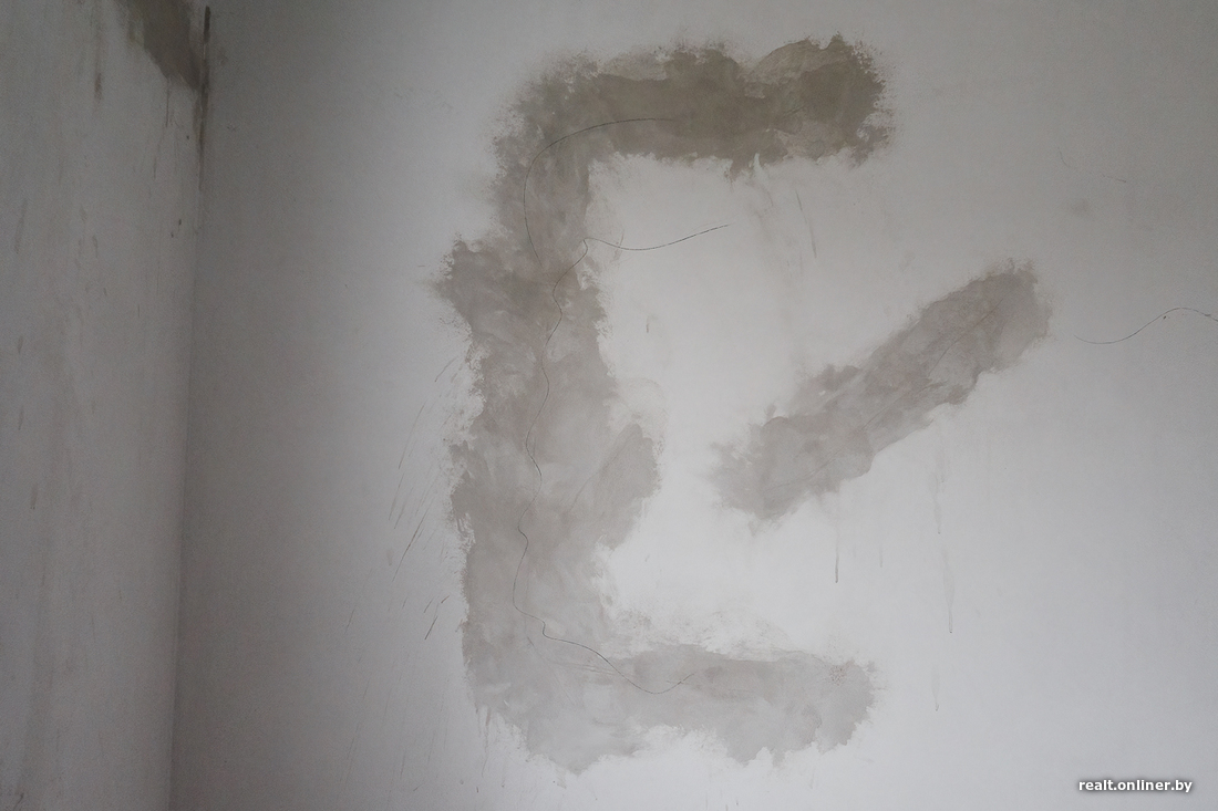 По штукатурке видно, что рабочие уже трудились над ней, совершенствуя проблемные места. Как результат — минимум крестиков (отслоений штукатурки). Но все же кое-что придется переделывать, уже силами «родных» мастеров. Правда, надо учитывать, что в «Гармонии» использовался известковый раствор, который сам по себе очень сыпучий. Так что точечный ремонт добавит повсеместной пыли.