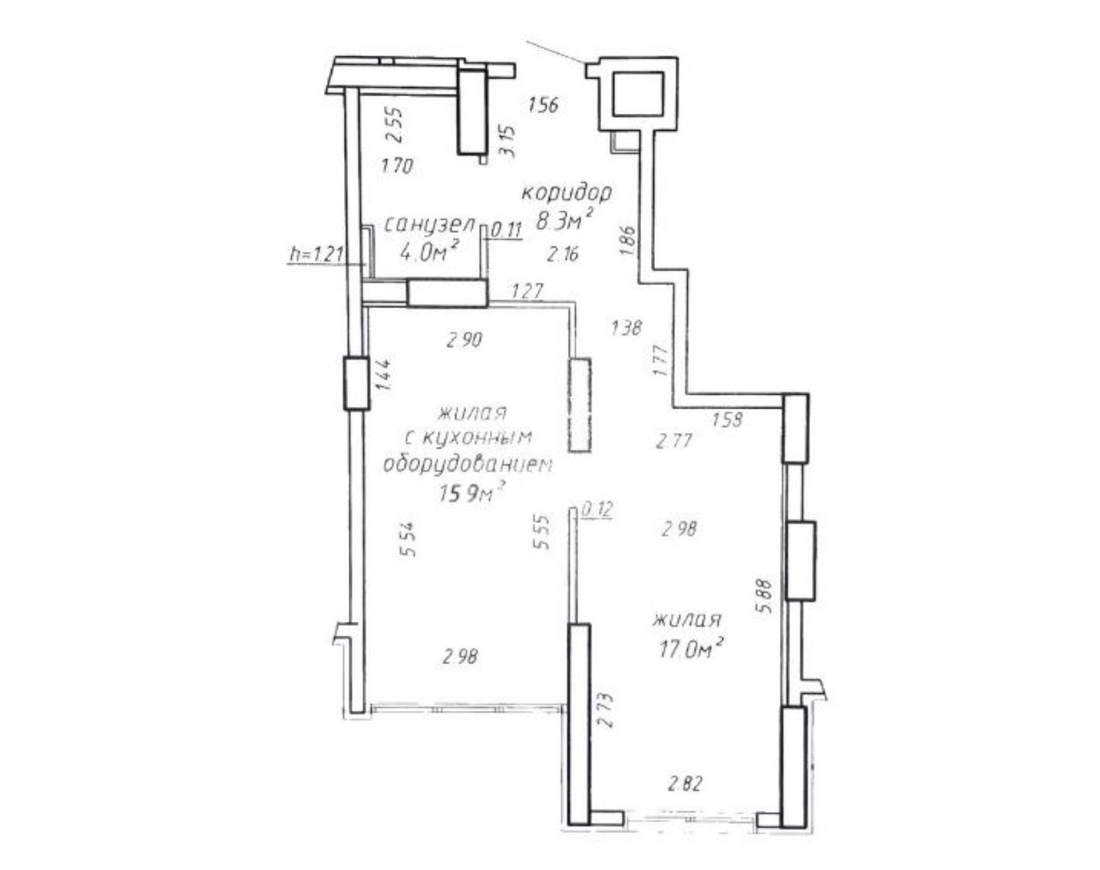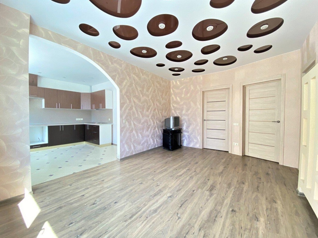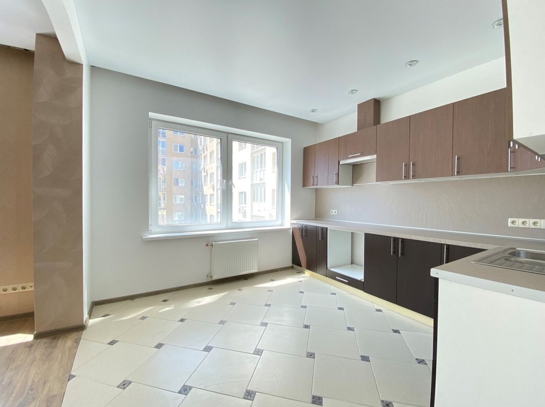 А теперь посмотрим на трехкомнатное жилье. За 107 000 у. е. продается квартира с чистовой отделкой и практически полным отсутствием мебели. Даже сантехники нет. Зато можно будет обставить на свой вкус. Размер жилья — 63,7 кв. м. Находится в монолитном доме 2014 года.