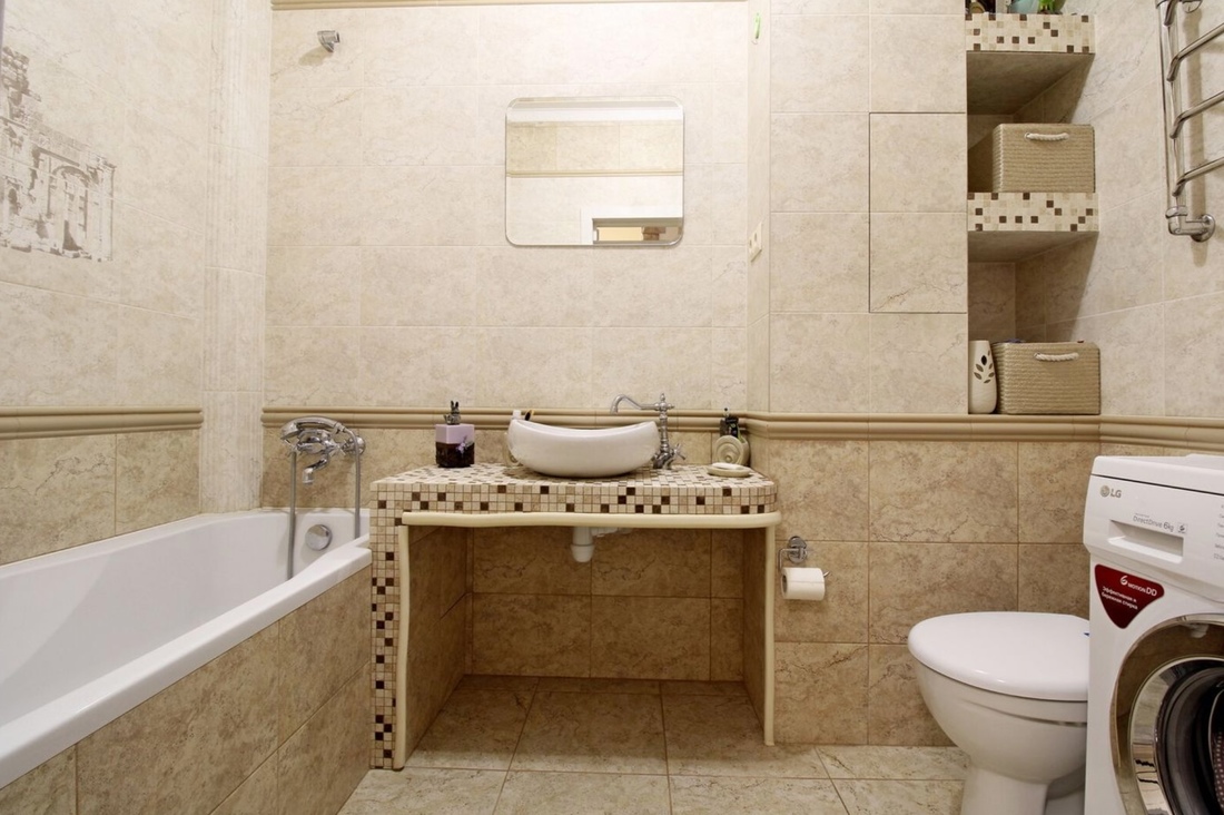 Последний объект — жилье в монолитном доме 2014 года за $135 000 по курсу. Размер — 77 кв. м. Состоит из двух спален, просторной кухни-гостиной и большой ванной. Интерьер наверняка покажется кому-то устаревшим, но кто-то точно разглядит в нем романтику 2000-х.
