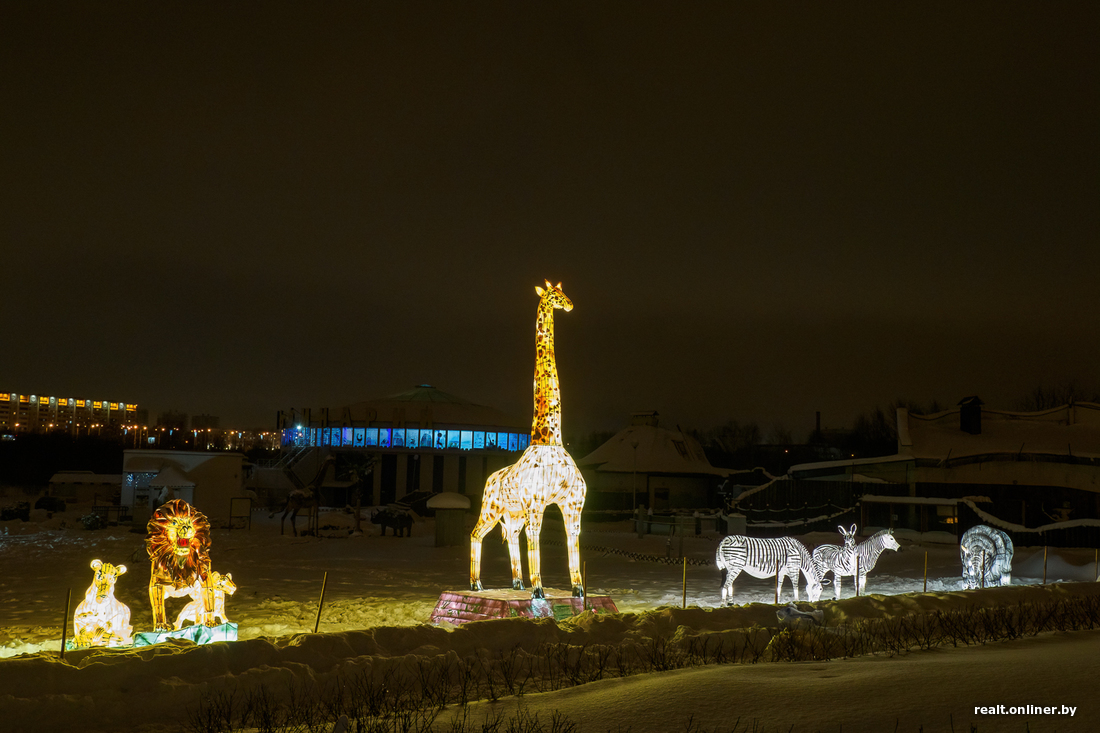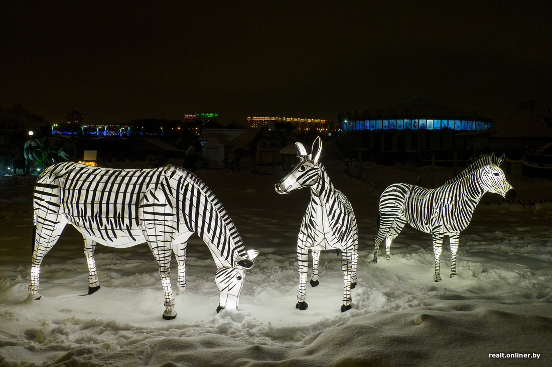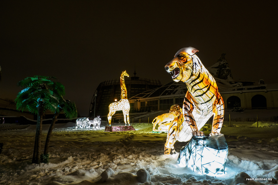 — Две похожие выставки световых фигур уже проводились в предыдущие годы на территории минского ботанического сада. Но на этих выставках не было движущихся фигур, и тематика их была больше связана со сказочными персонажами. Здесь же посетитель получает возможность прогуляться по зоопарку и посмотреть не только на живых животных, но и на их рукотворные копии, — объясняют в зоопарке и дополняют, что посмотреть на все это можно по стандартной цене входного билета: