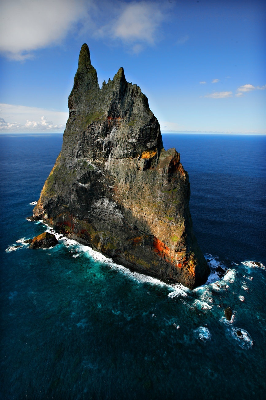 Пирамида Болла в Тасмановом море между Австралией и Новой Зеландией расположена на подводном плато, где когда-то шла активная вулканическая деятельность. Шесть-семь миллионов лет назад вулканы потухли, и все это время постепенно разрушались под воздействием воды и ветра, уменьшившись в десятки раз. Остров в нынешнем виде и представляет собой остатки кальдеры, одной из ее стен, и природа создала максимально эффектный образ. Имея в длину 1,1 километра, но в самой широкой точке всего 300 метров, Пирамида смотрится как гигантский изогнутый парус. Отвесная скала, пик которой находится на высоте 551 метр над уровнем моря, в своем роде самая высокая в мире.