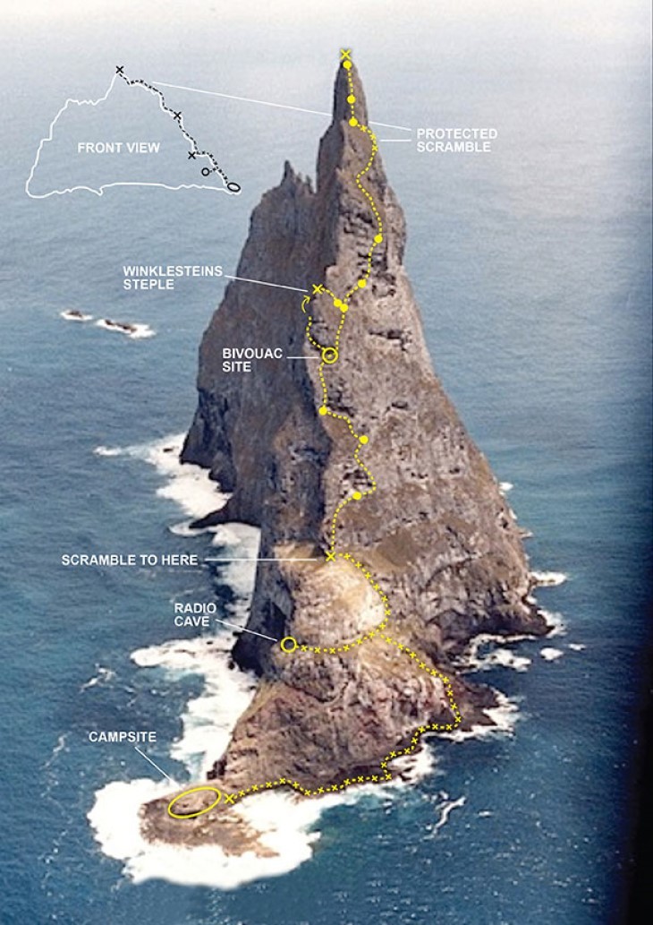 «Она пронзает воздух, словно широкий первобытный каменный кинжал», — писал про этот остров авиатор Фрэнсис Чичестер, наблюдавший его в 1931 году в первом транстасманском одиночном полете. Другие исследователи называли его «одинокой скалой, полной невзгод и красоты» и «тихоокеанской загадкой». Но еще более верным будет сравнение Пирамиды Болла со «стариком, утомленным океаном, который все еще пытается его измотать». Остатки древнего вулкана между Австралией и Новой Зеландией существуют уже миллионы лет, и срок его жизни подходит к концу. Однако пока еще он высится напоминающей парус громадой высотой более 500 метров. Высадка посторонних здесь запрещена не только из-за неприступности этой скалы, но и потому, что тут чудом сохранилась колония редчайших насекомых планеты, пугающих своими размерами.