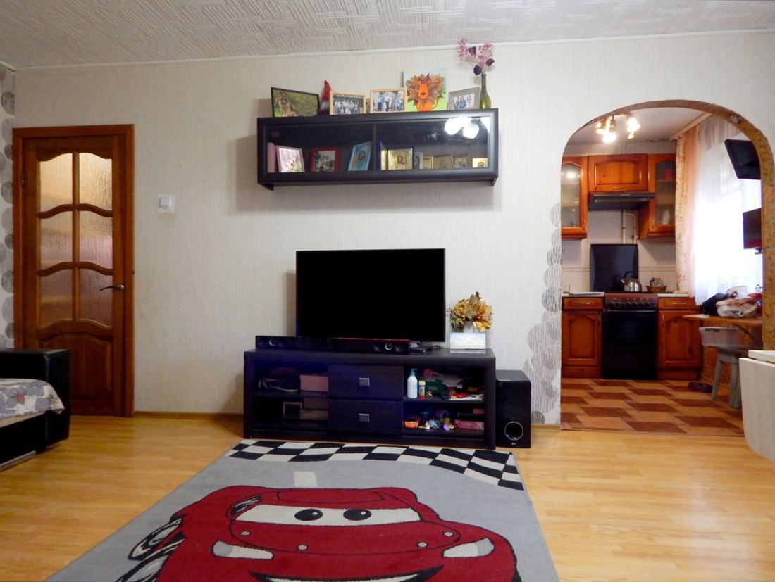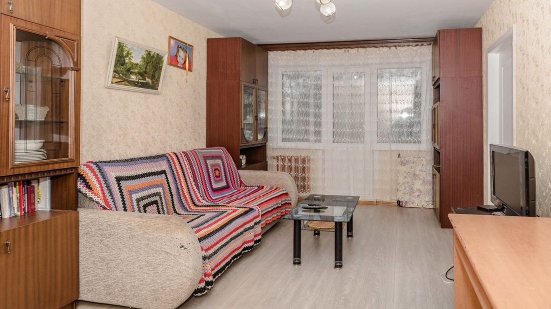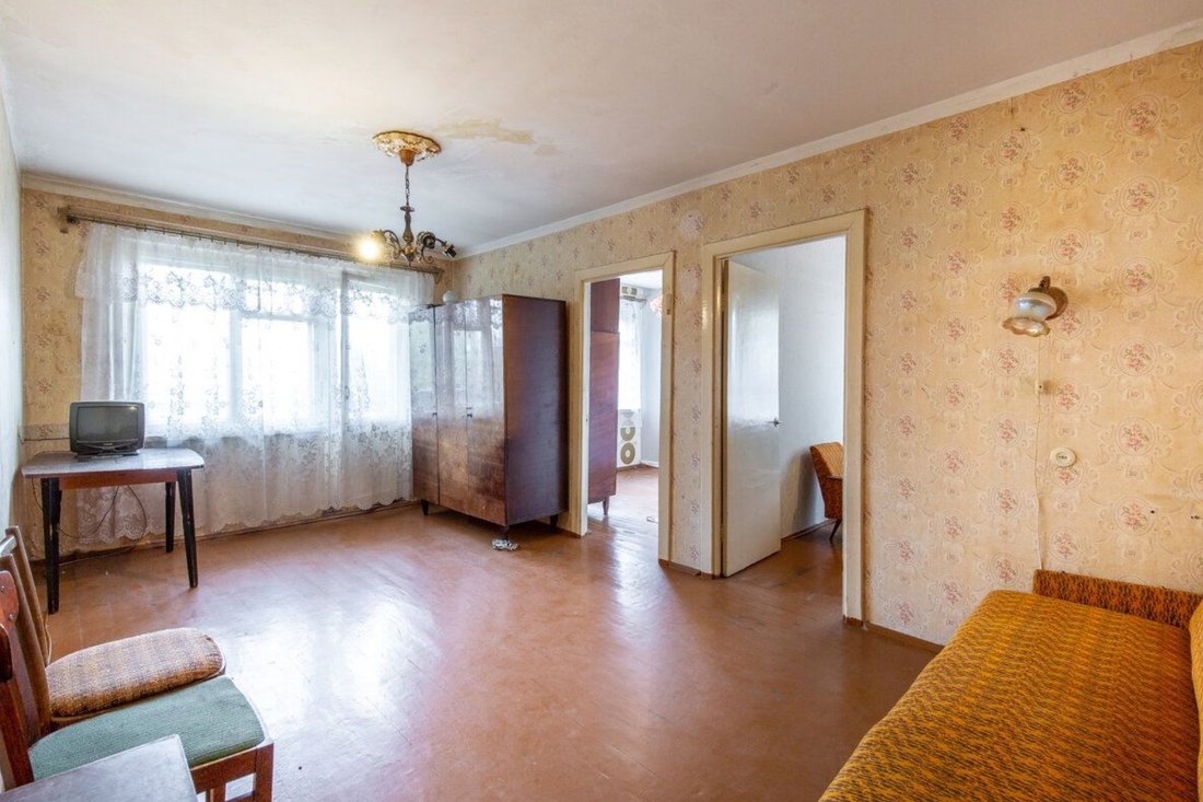 Размер объекта — 50 «квадратов». Одна из комнат проходная. Интерьер можно назвать советским, так что без ремонта, скорее всего, не обойтись.