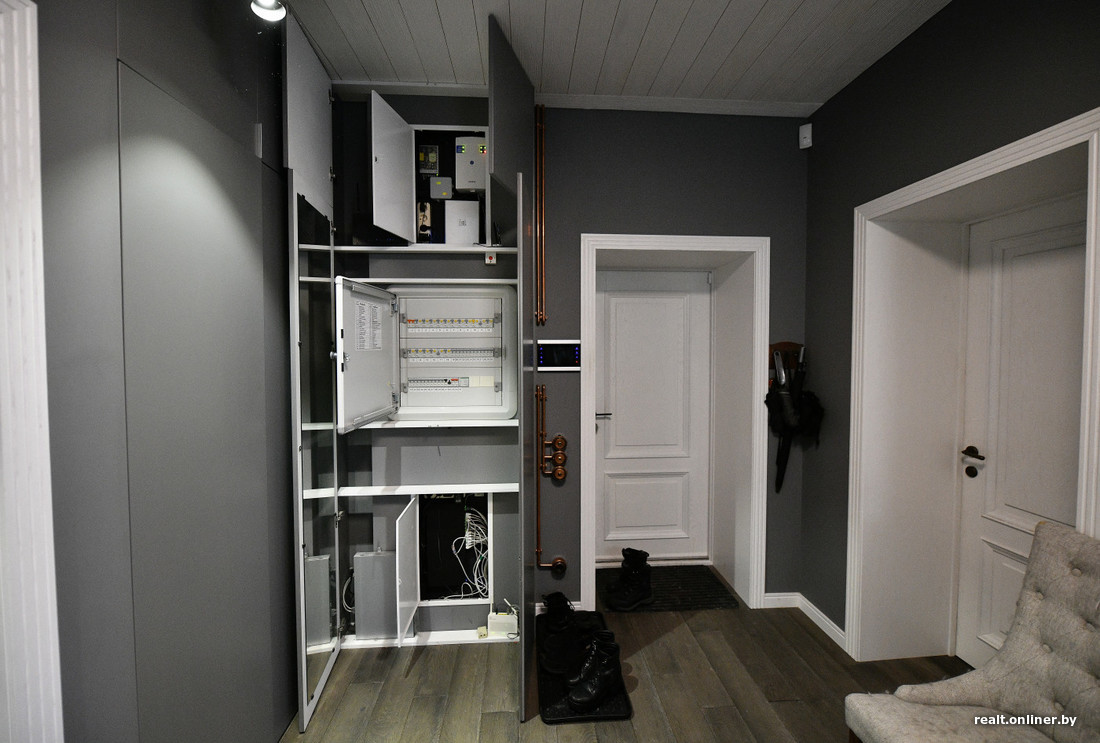 — Если мы вдруг захотим днем посмотреть кино и включим подходящий режим, сама собой включится подсветка и опустятся жалюзи. Когда на улице уже темно, они останутся на месте. Они узнают, в котором часу в Минске закат, и в зависимости от этого решают, что им делать. Но если нужно, я могу управлять ими и вручную, — говорит Тимур.