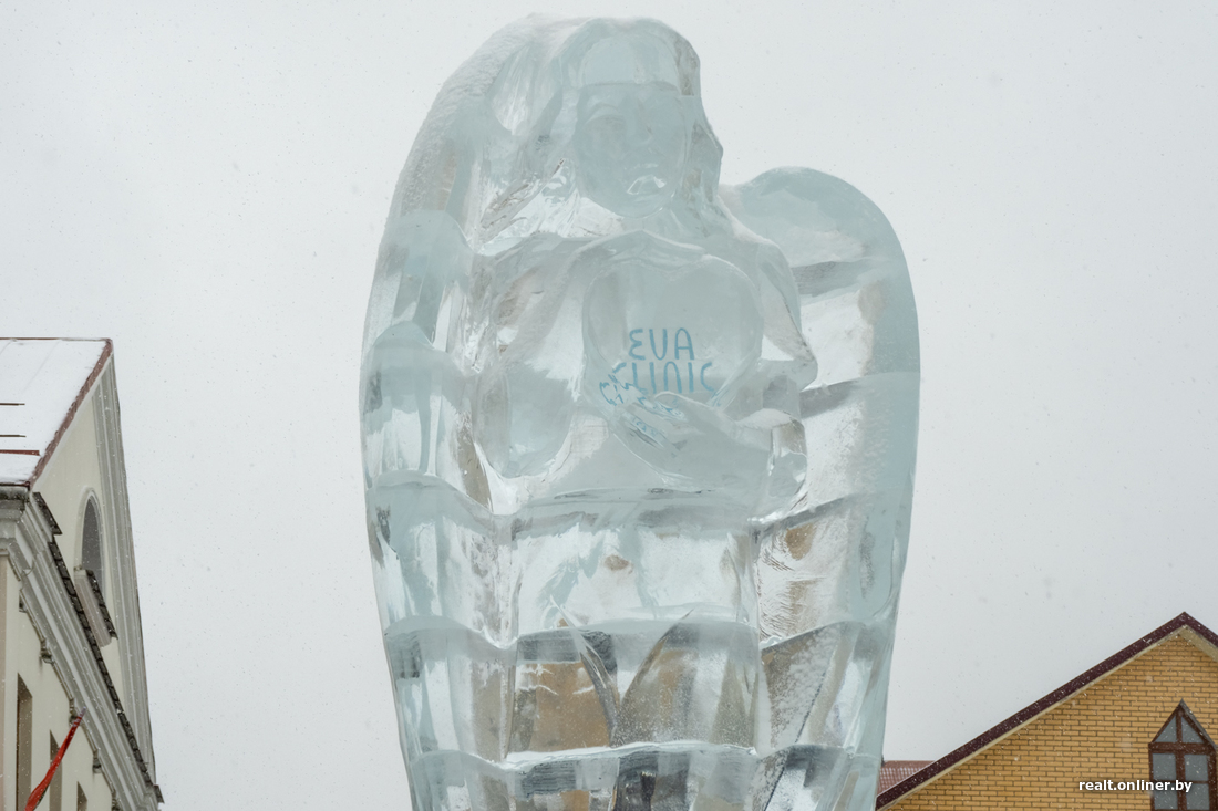 В центре Минска появилась ледяная скульптура выше человеческого роста. Она символизирует врача-ангела. Пока не растаяла, посмотрели, как это выглядит.