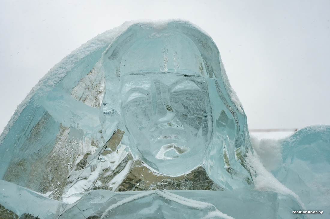 Любопытно, что лед для скульптуры везли аж из Перми, это около 2300 километров.