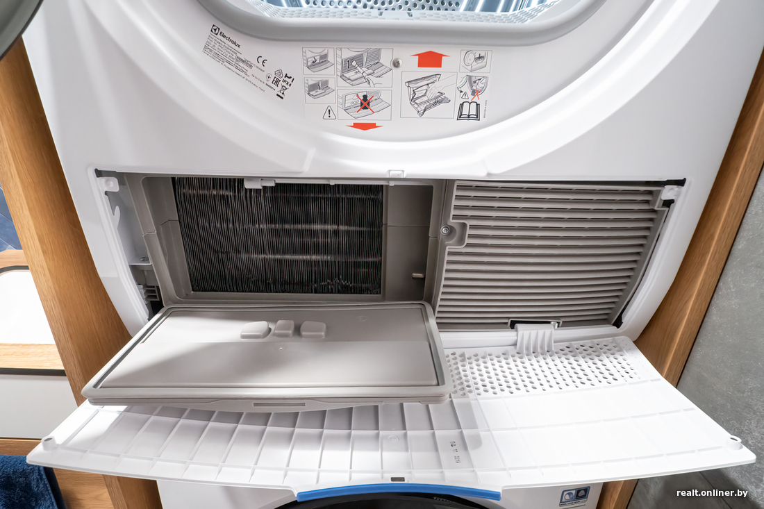 К слову, свою машинку я не стала подключать к канализации, поэтому вся влага собирается в специальный контейнер, который надо периодически опорожнять. Считается, что этот «бак» и фильтр для ворса лучше чистить после каждой сушки. Поначалу я так и делала, теперь могу пропустить несколько стирок и только потом почистить.