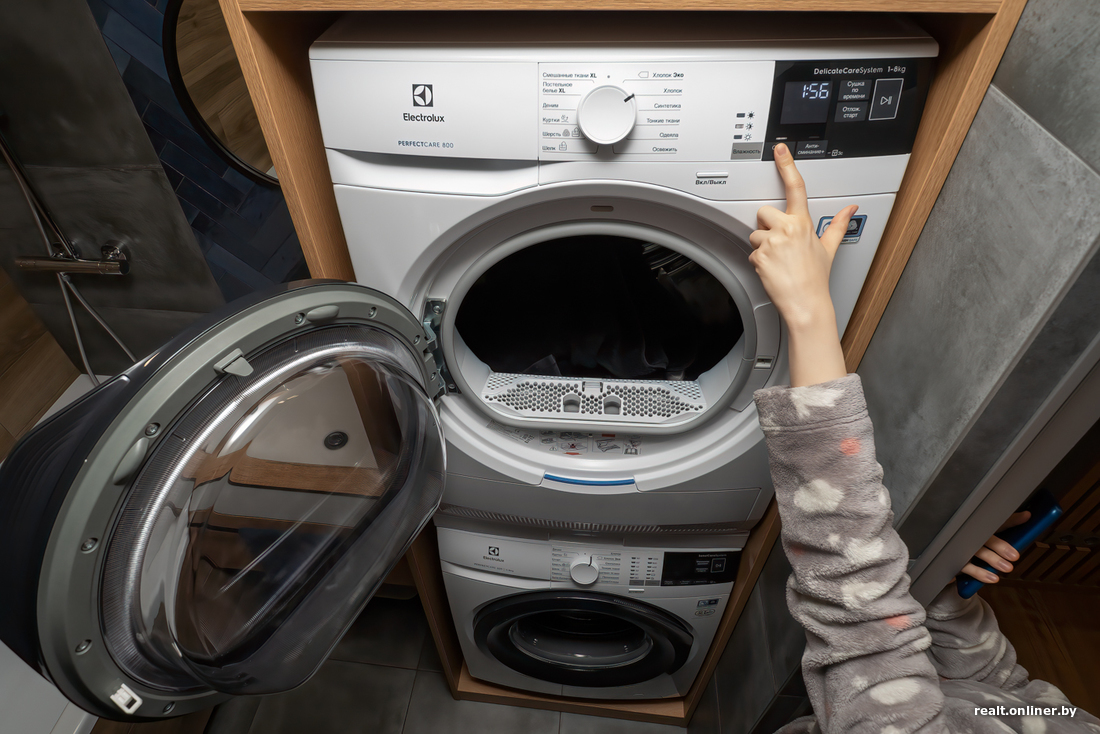 Поначалу склонялась к тому, чтобы купить совмещенную стирально-сушильную машину: хотелось сэкономить место. Этот же вариант предлагал и дизайнер: мол, техника станет под столешницу и все будет выглядеть красиво. Но, посидев на форумах и посмотрев видеообзоры, решила, что лучше все же брать два отдельных девайса. И в первую очередь из-за специального фильтра, который есть в «самостоятельной» машинке. В нем собирается вся пыль, ворс, волосы.