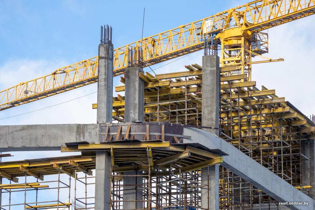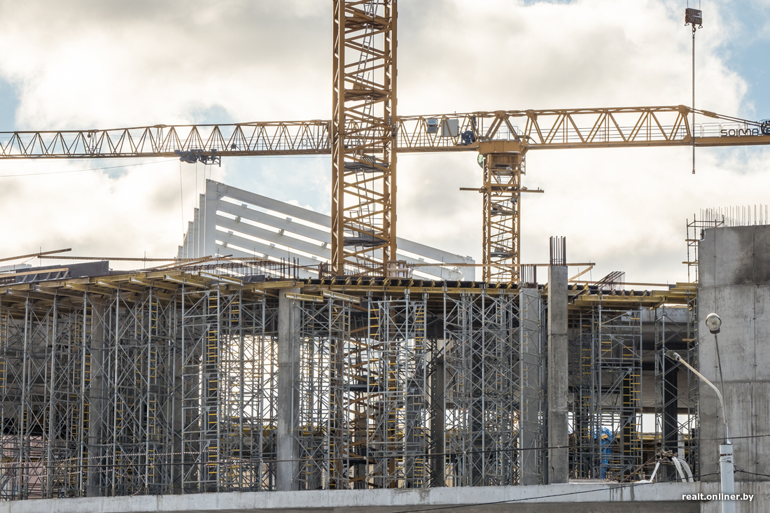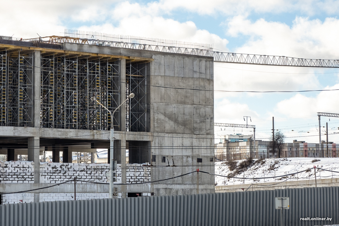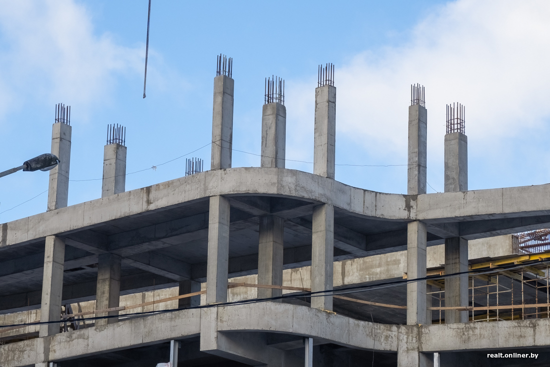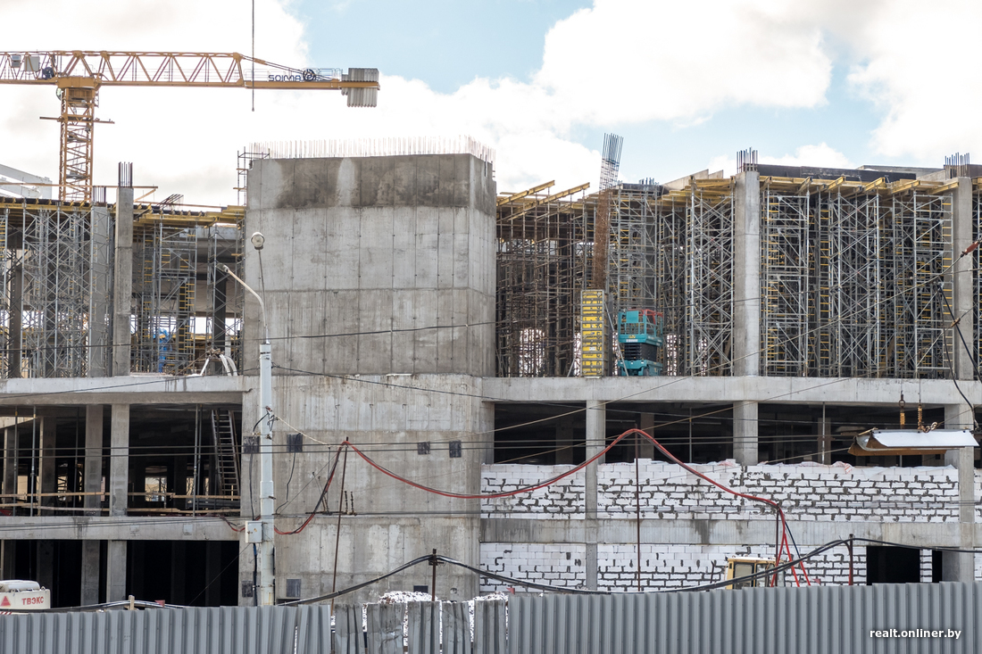 Известная минская стройка на пересечении улиц Маяковского и Аранской в Минске наконец обрела силуэт. Будущее здание поднялось высоко над строительным забором. Посмотрели, как сейчас выглядит объект.