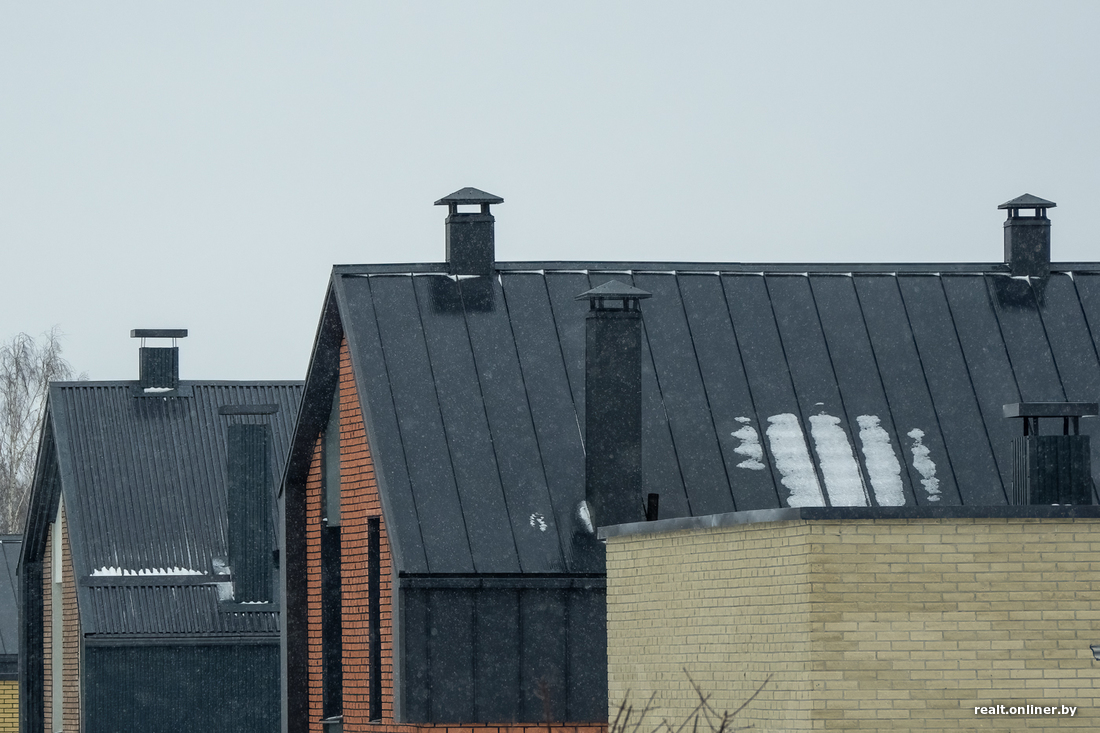 Зима — не лучшее время для загородной картинки. Гор и дремучих лесов, которые скрашивают пейзаж, у нас нет. Но тем не менее уже сейчас видно, что в поселке все идет по плану: подозрительных строек, грозящих вырасти до уровня четырех-пяти этажей, не обнаружено. Наоборот, коттеджи будто стали меньше: двухуровневый дом еще надо найти.