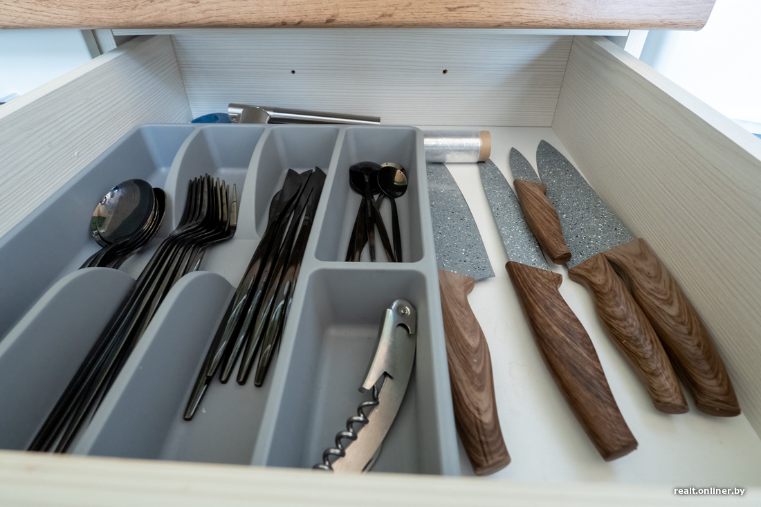 — Я хотел, чтобы все коммуникации были спрятаны: бойлеры, фильтры и прочее, — объясняет владелец. — Но помню момент, когда застройщик предлагал мне закрыть трубы шторками. Да, говорю, обязательно.