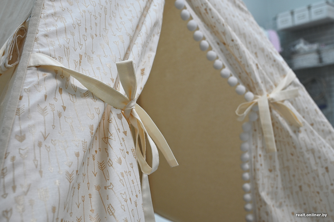 — Маркетплэйсы часта прадаюць кітайскія аналагі з сінтэтыкі, дзіця ў такіх вігвамах проста пацее. У нас усё натуральнае: бавоўна, лён. Шмат супрацоўнічаем з баранавіцкім ільнокамбінатам. Некаторыя тканіны — польскія, турэцкія. Ну і шыць трэба якасна: каб ніткі не тырчалі, быў роўны радок.