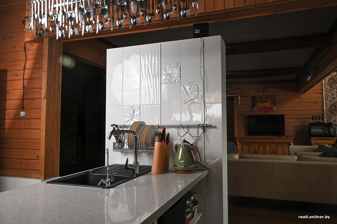 — У лестницы, ведущей на второй уровень, довольно интересная история. Раньше у дороги росли два ясеня, мешавшие нам сделать человеческий въезд во двор. В сельсовете срубить их запретили: их когда-то посадил граф Чапский — ясеневая аллея вела прямо к его имению. Так они и стояли, пока их с корнем не вырвал сильный ветер. Мы решили сохранить эти деревья: повезли сначала за 60 км, чтобы распилить, потом за 120 км, чтобы высушить, затем за 180 км, чтобы создать эту лестницу. Так нам удалось сберечь частичку истории.