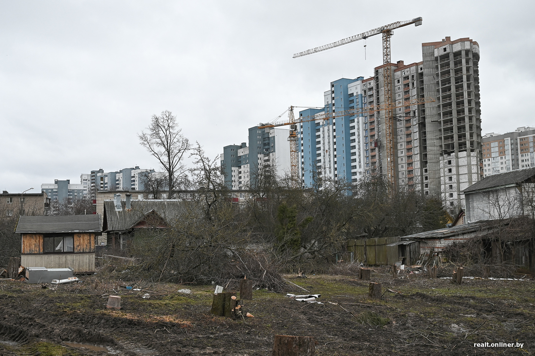 Частный сектор в районе Грушевки сокращается с каждым годом. Столичные девелоперы, распробовав эту часть города, ни за что не хотят уходить с проспекта Дзержинского. И если раньше «полосы отвода» вдоль основной дороги застраивали частники, теперь пришло время проявить себя «госу». Так, уже несколько дней подряд идет масштабный снос деревянных домов и добротных коттеджей в Землемерном проезде, Фанипольском переулке, на 3-й улице Щорса — то есть сразу за «Кварталом на Грушевке».